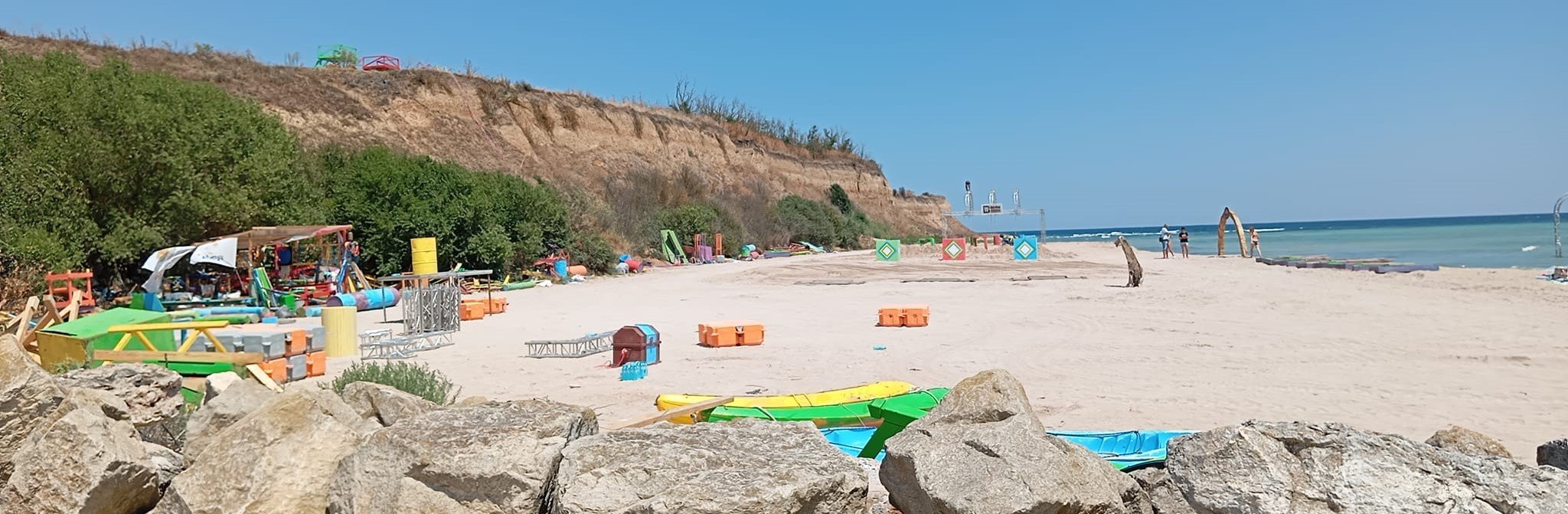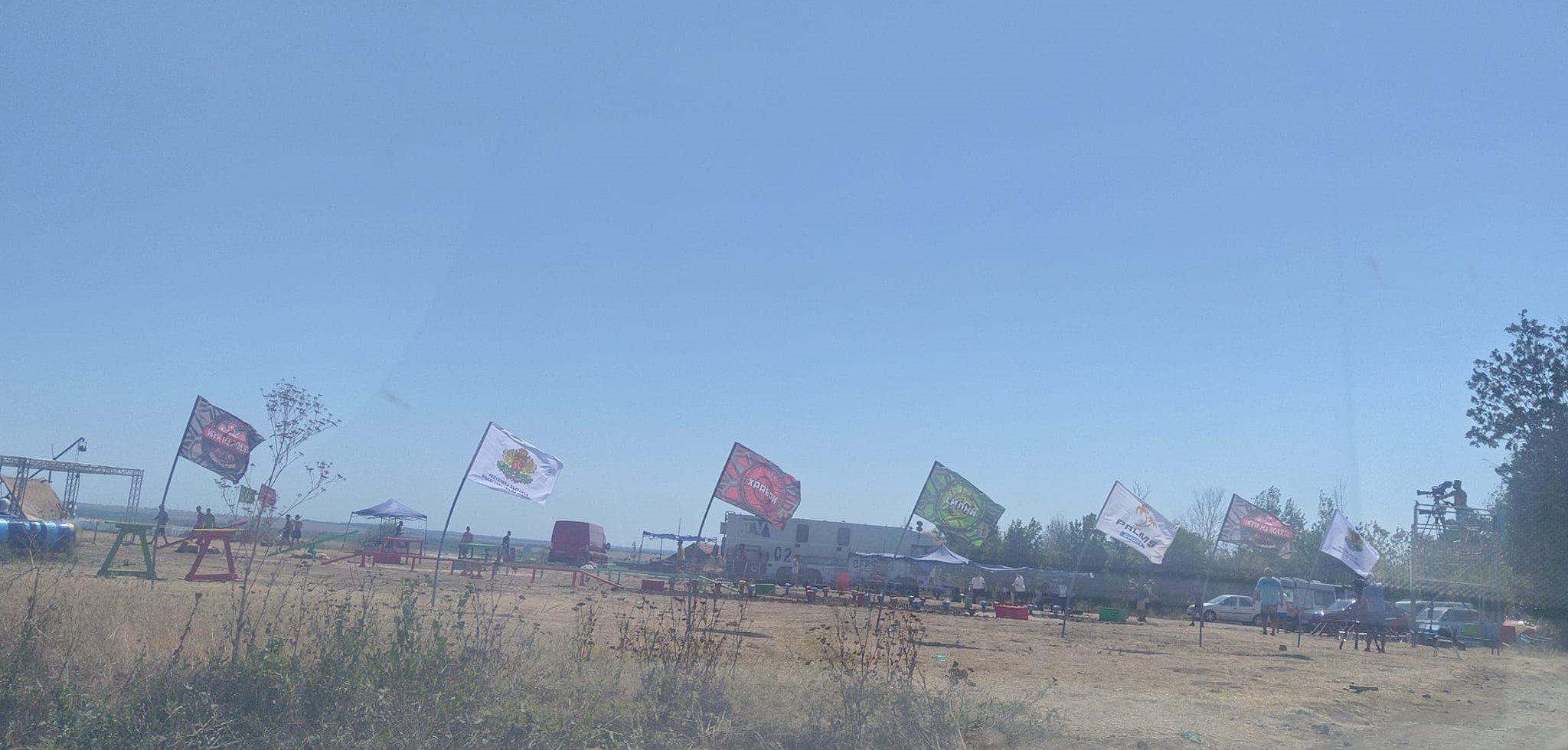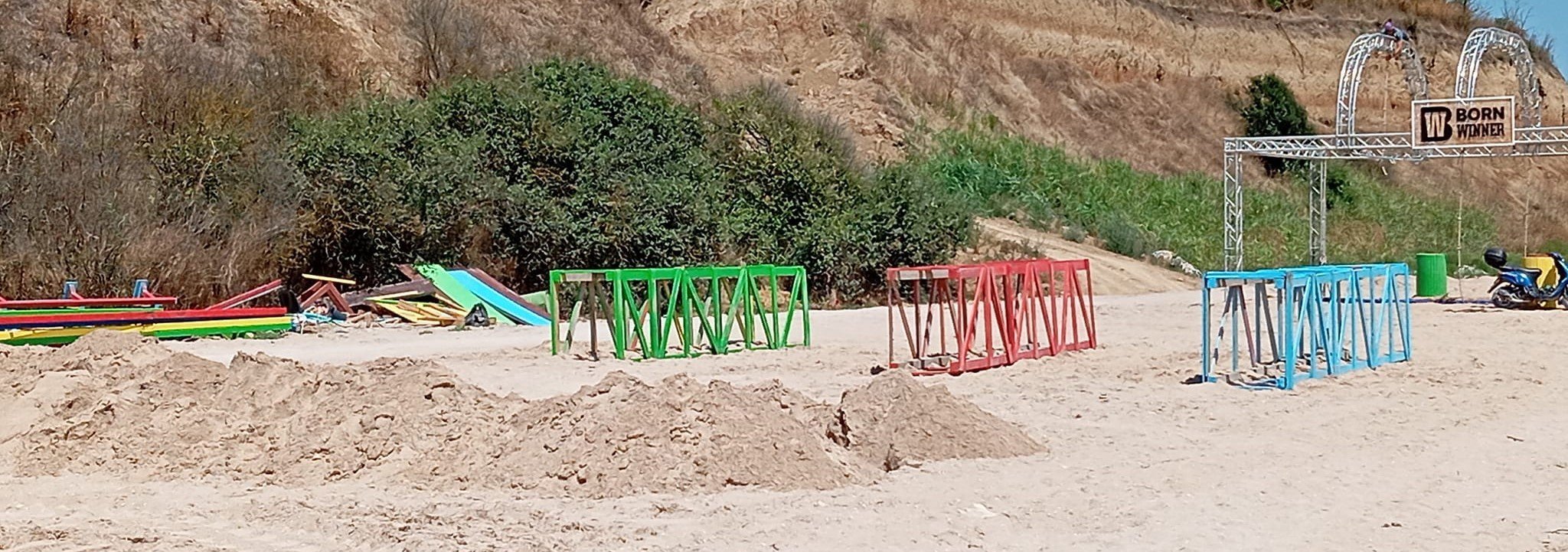 Аз имам снимка от вчера как подготвят другата арена (тази над плажа, А.К.А със слънчогледите): градяха някаква метална конструкция, но не се виждаха никакви цветове: вероятно капитанската е била горе, а номинационната на плажа.