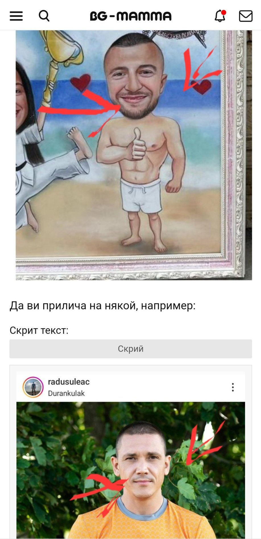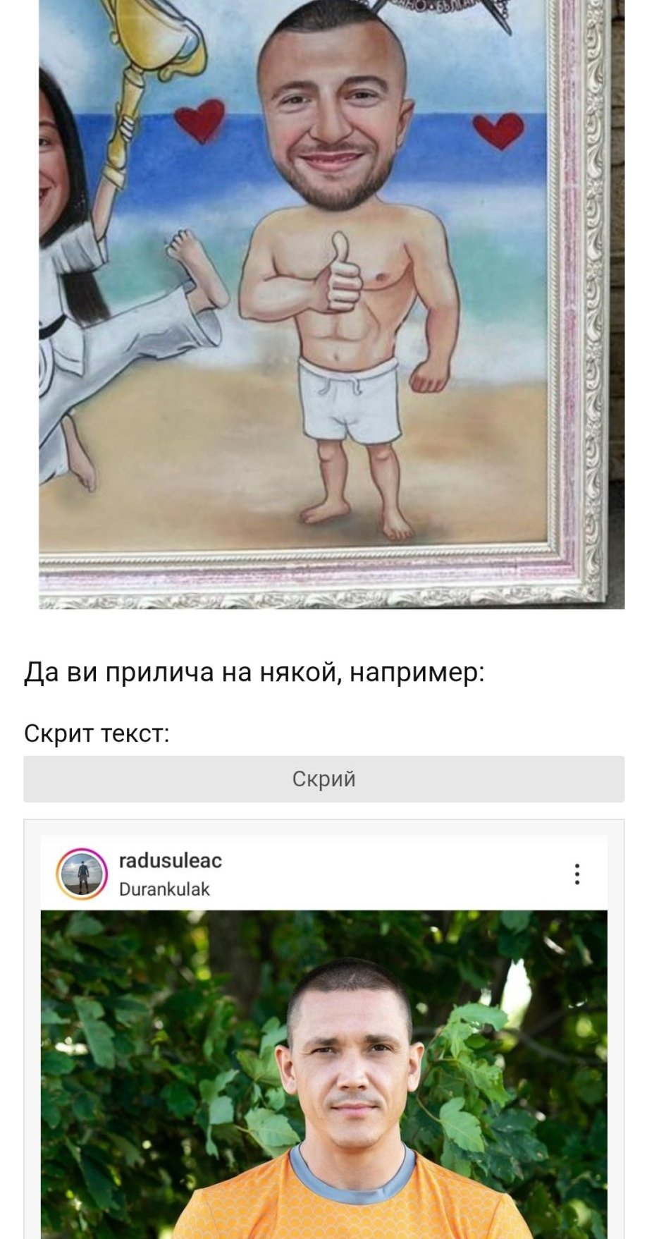Засега го харесвам Раду, но това изобщо не ми прилича на него, художникът е много зле, ако е искал на него да го докара ... нито очи, вежди, нос, нищо.