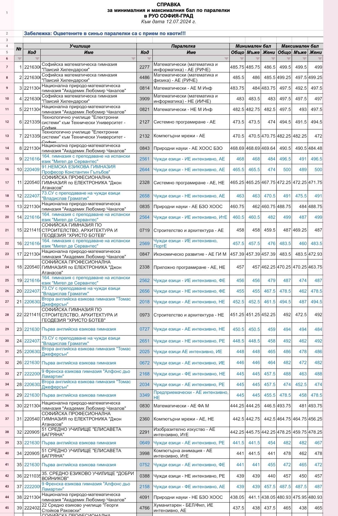 Като изключила първите 4-5 паралелки, на мен баловете не ми се струват много по- високи от тези на миналата година. Дори и на първите са подобни като на 2023.