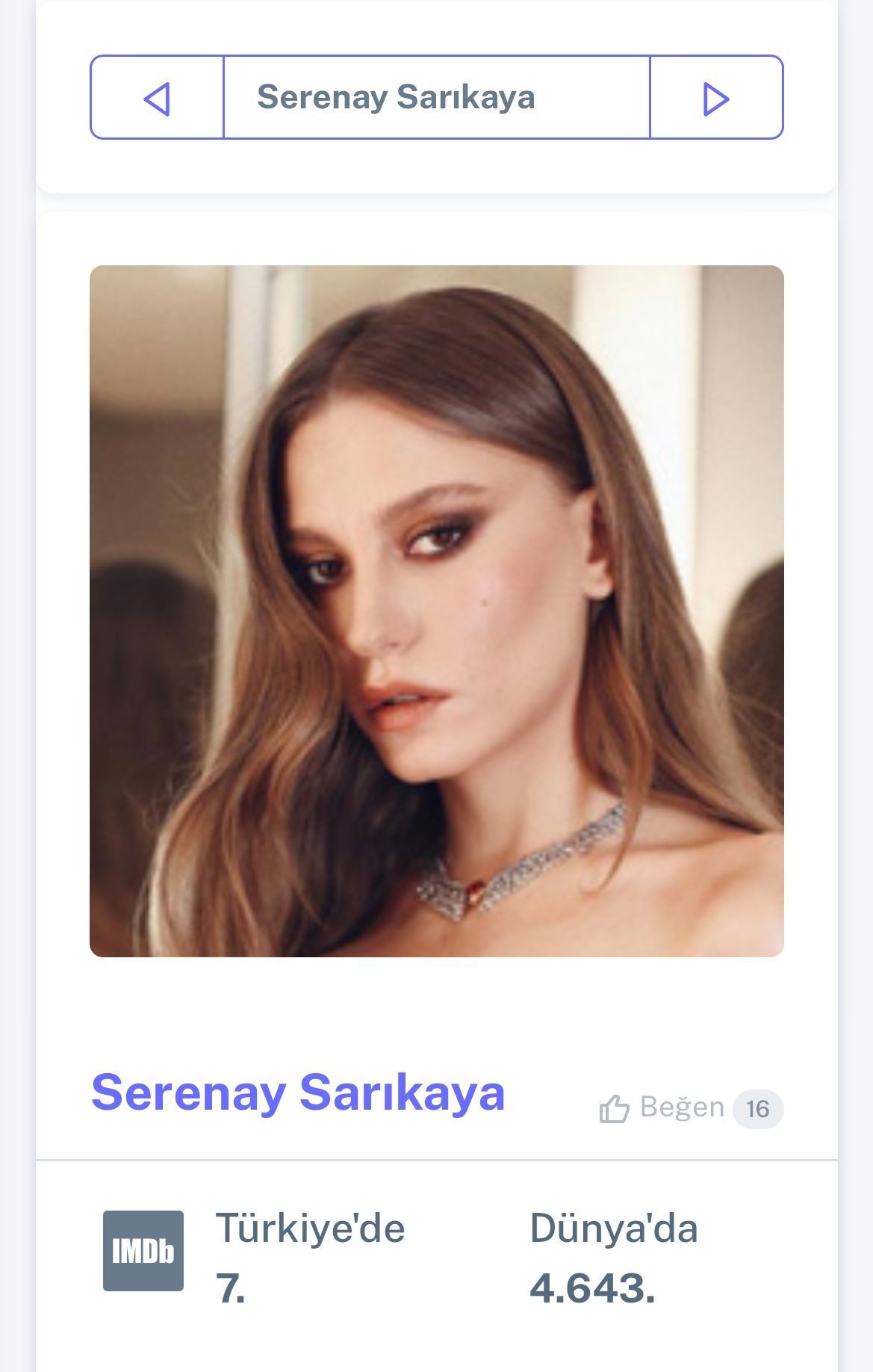 ТОП-10 Рейтинг на турските актриси и актьори на сайта IMDb за периодас 15 - 21 июля 2024 г.Серенай е №7, а Къванч №10.