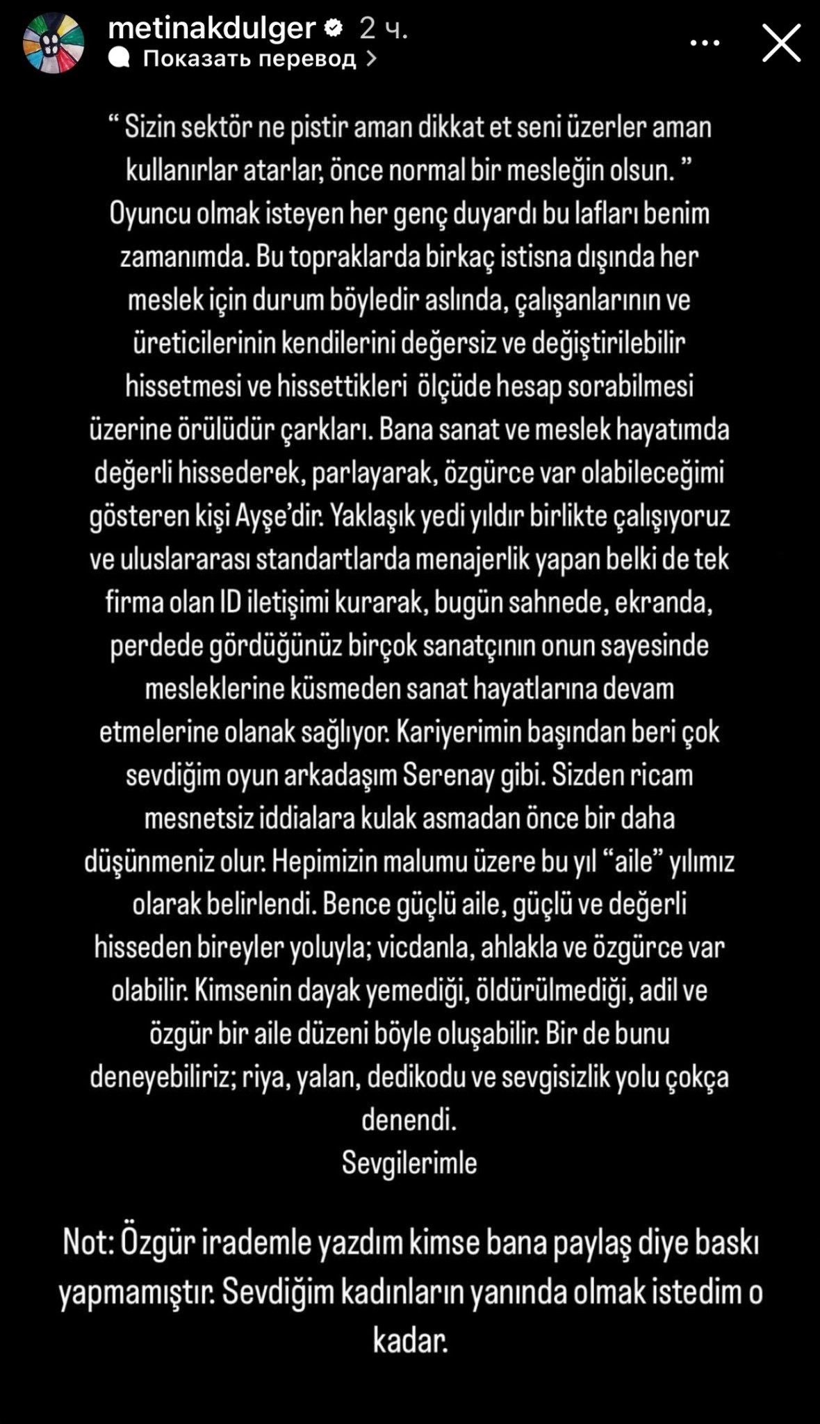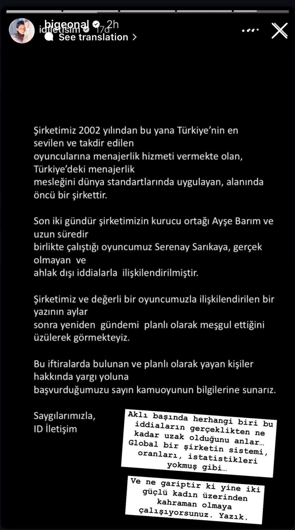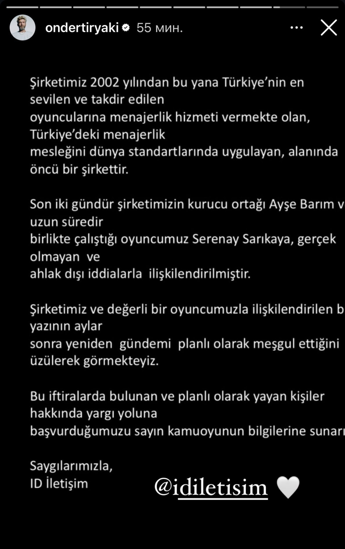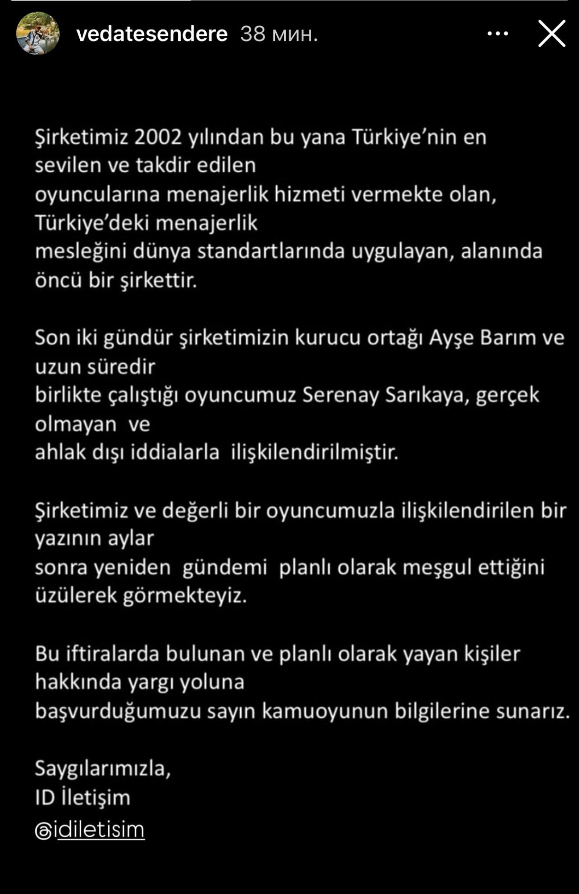 През последните два дни съоснователят на нашата компания Ayşe Barym и нашата актриса ,с която ние работим от дълги години Serenay Sarıkaya бяха обвинени в неверни и неморални обвинения.