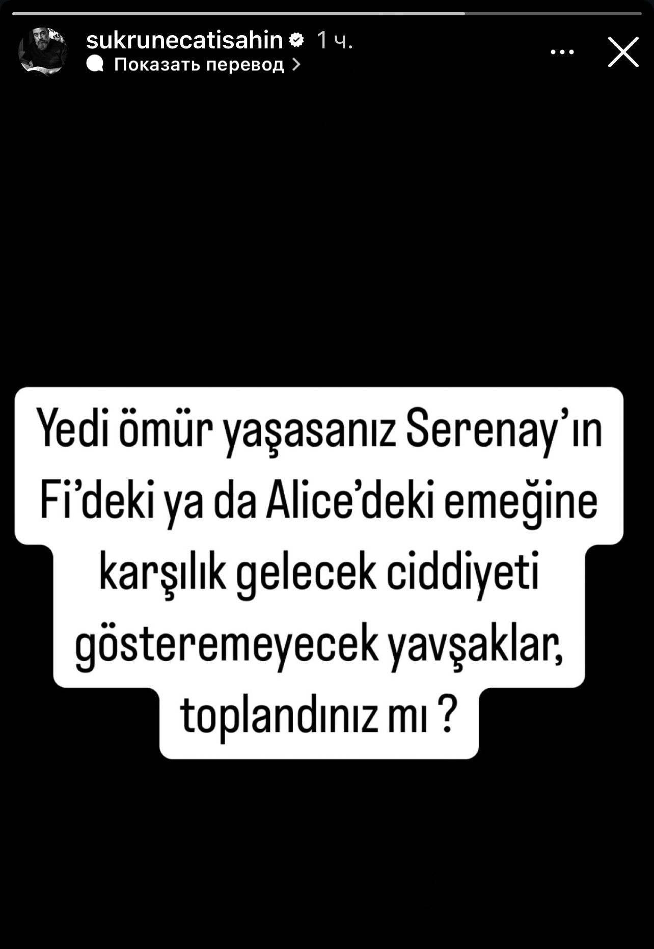 Би ли принудила една от най-звездните и престижни актриси в Турция да влезе във връзка с някого срещу пари? Тези, които вярват в това, го вярват, защото искат да го вярват. Освен това Серенай наистина ли няма здрав разум? Ако мислите така, грешите, приятели."