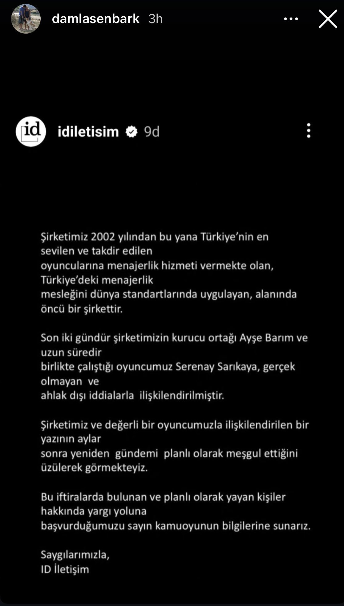 Агенция ID İletişim съобщиха, че са завели дело срещу компании и хора, които клеветят и разпространяват фалшиви новини за Серенай и Айше Баръм: