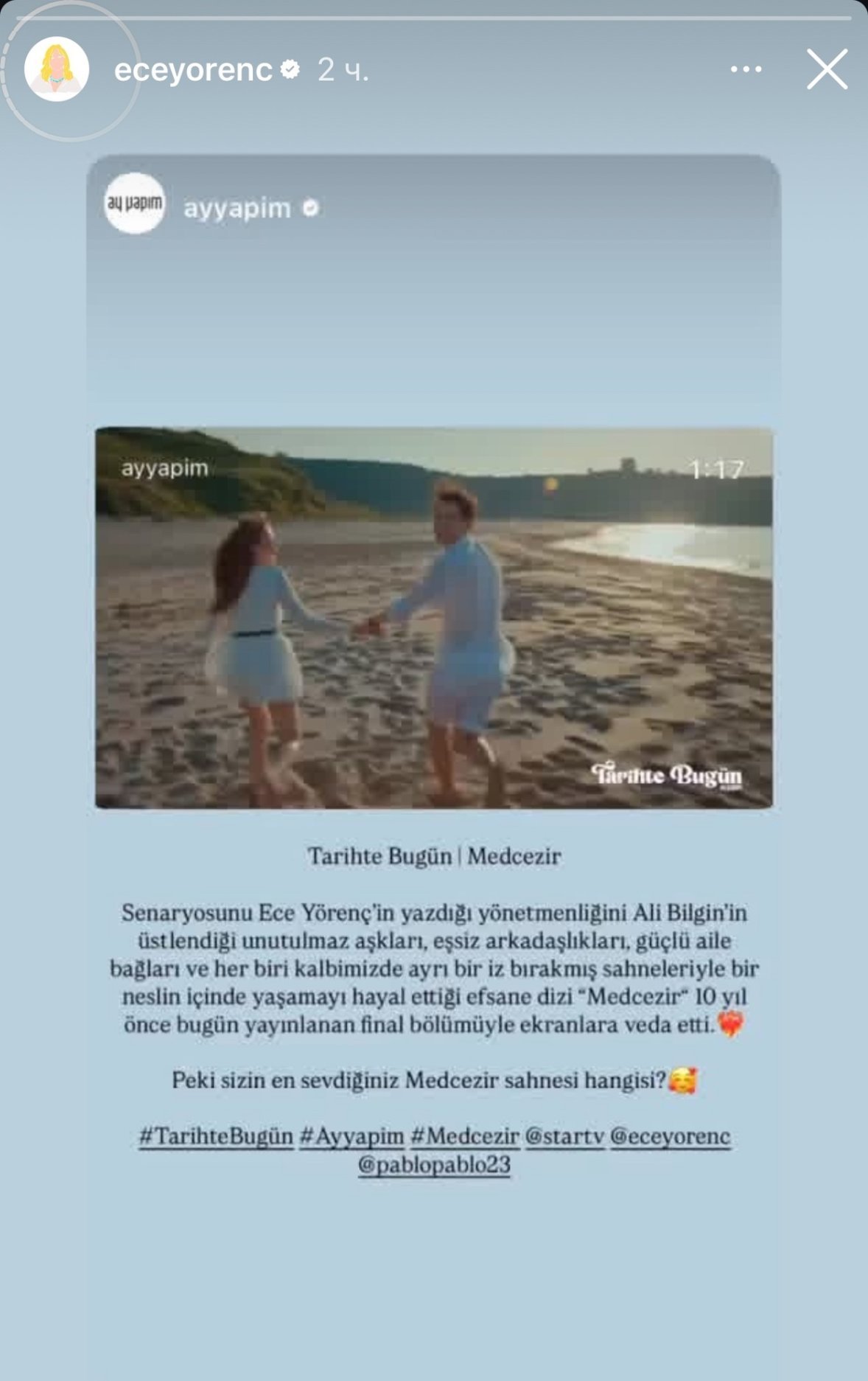 🆕 Продуцентската компания Ay Yapım, Ece Yörenç и Ali Bilgin си припомнят своя незабравим сериал днес: