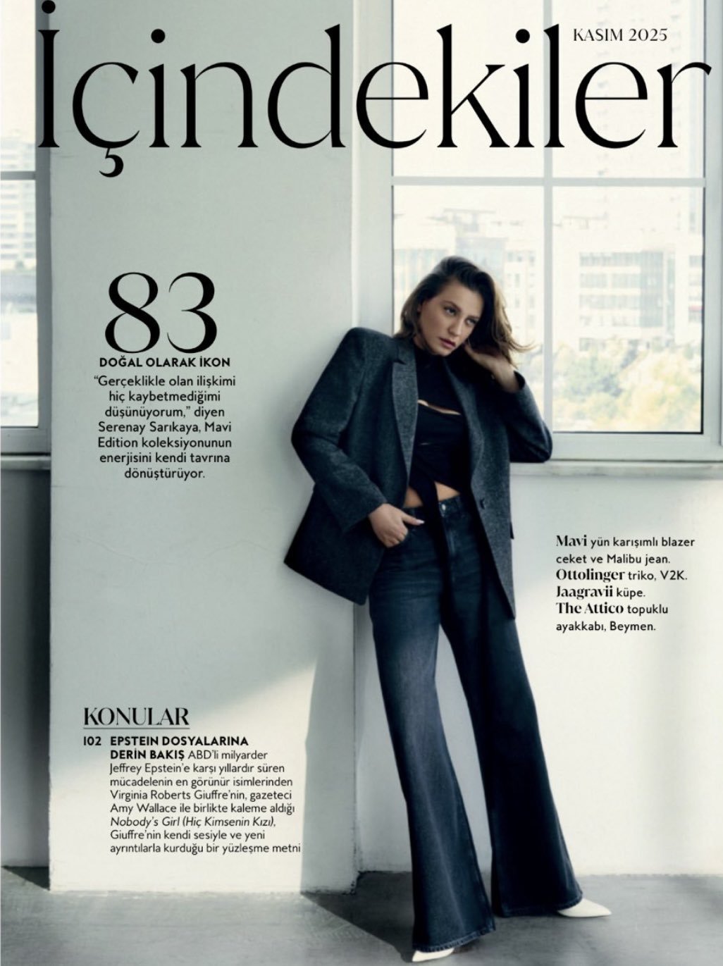Ноемврийският брой представя нашата фотосесия със Серенай Саръкая, в която са представени звездни модели от колекцията Mavi Edition.“