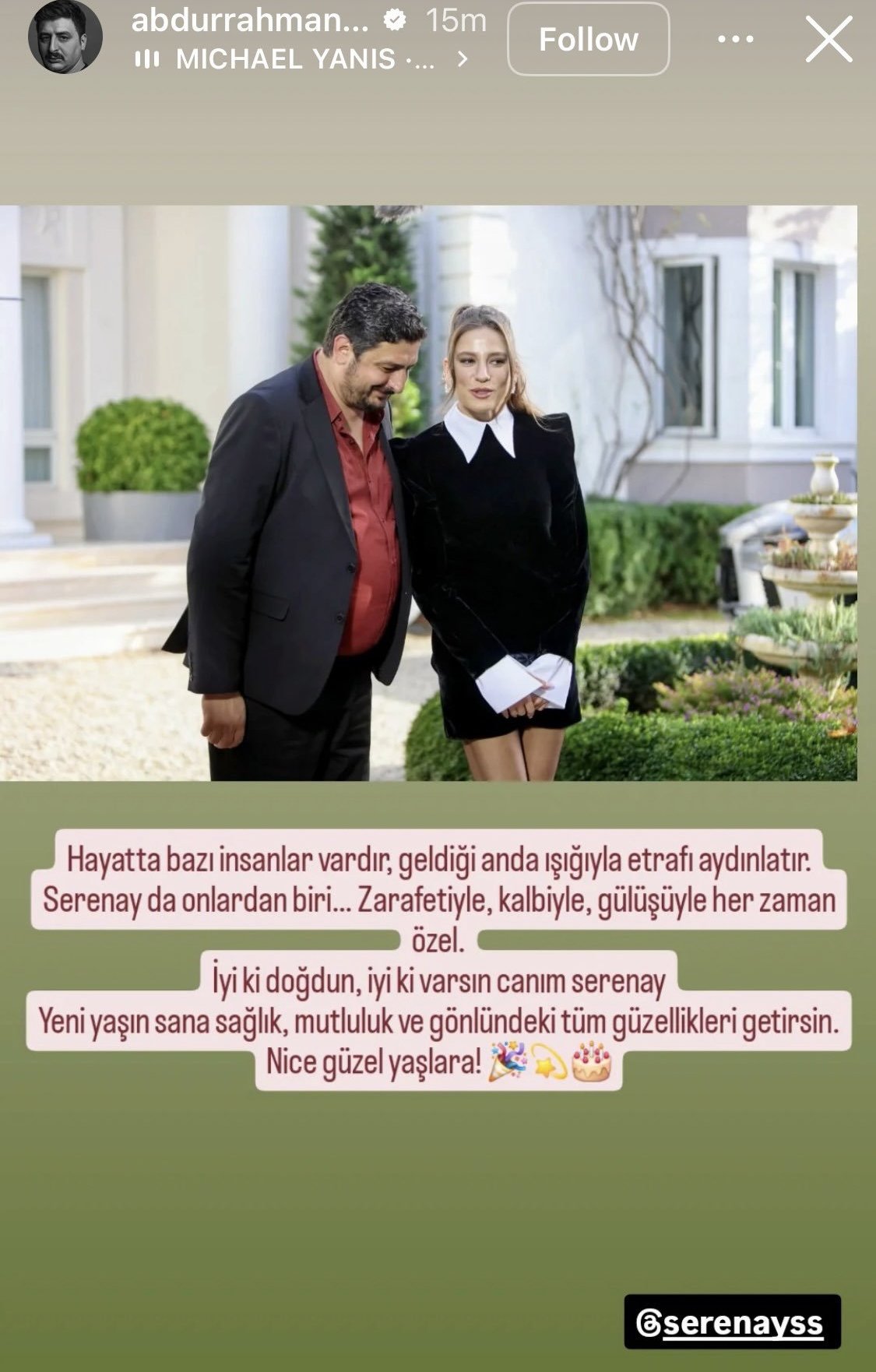 2) От РД на Сероша с Мерт : Happy birthday to me♥️🌹 @thisismertdemir