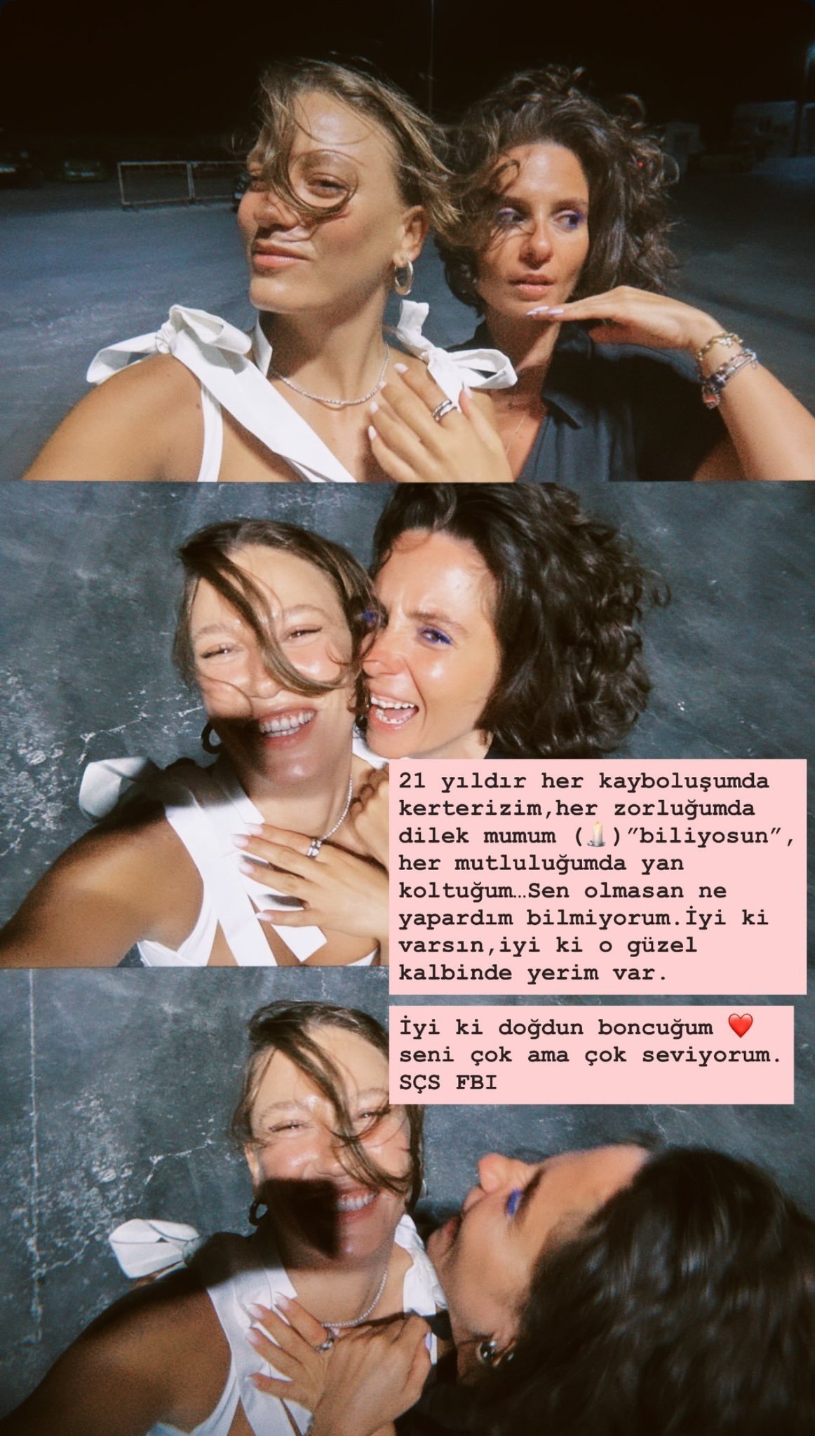 Първия поздрав е от най-близката и приятелка Буржум:„В продължение на 21 години ти си моят ориентир, когато съм изгубена, моята свещ на желанието във всяка трудност,ти си винаги до мен  когато съм щастлива... Не знам какво щях да правя без теб. Добре е, че съществуваш, добре е, че имам място в красивото ти сърце.“
