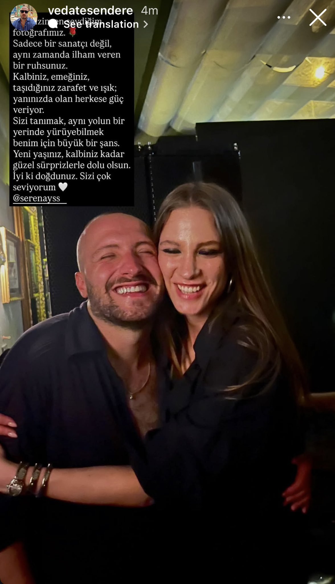 И Мерт Демир отбеляза рождения ден на любимата си Serenay Sarıkaya с пост в инстаграма си: „Честит рожден ден, ягодке, единственото, за което съм луд сред цялата лудост, сме ние.“, придружена от тези снимки.