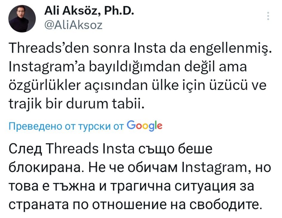 Не мога да повярвам, ама те турците сами са си блокирали ИГ. А аз си мислех, че са им  наложили някаква рестрикция.
