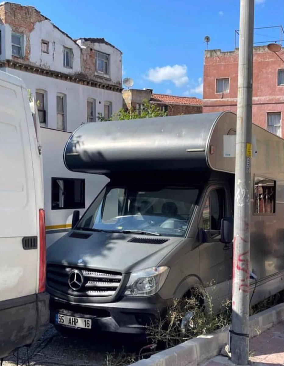 Задната улица на Halkbank, на улицата, където се намира кръвният център на Червения полумесец.