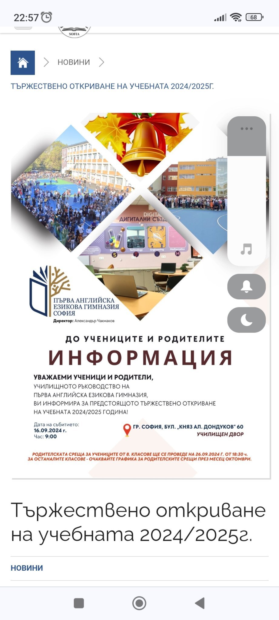 Здравейте, дали може да потвърдите ако сте видяли като мен, че родителската среща беше на 11.09? Сега при проверка в сайта има инфо за 26.09 18.30 ч.