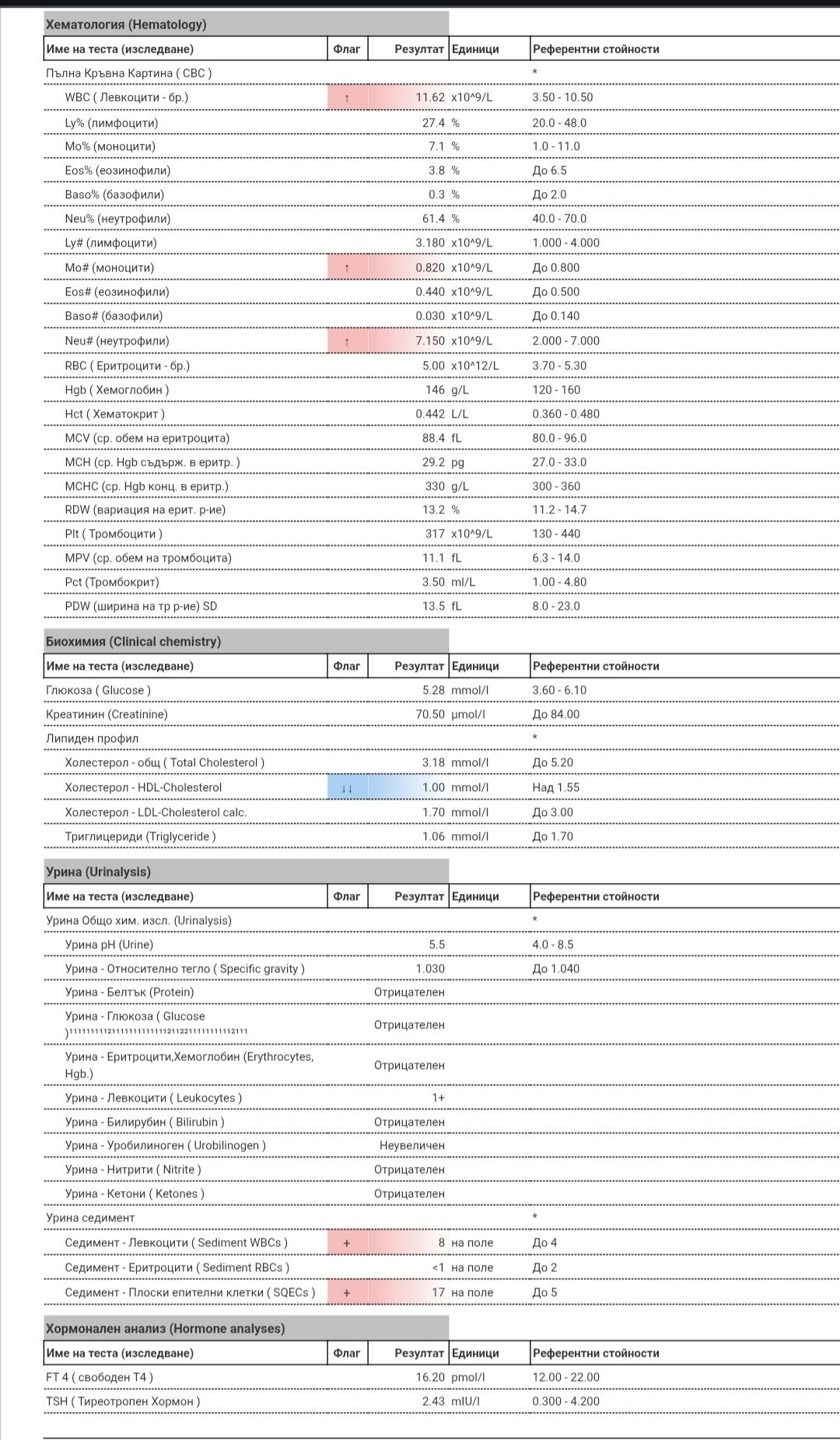 Здравейте днес си правих изследвания за щитовидната жлеза взеха ми кръв и урина , утре ще ходя при личната да види изследванията ,но преди това искам да кача тук да видя какво ще е вашето мнение , защото цикъла ми беше нередовен , бях 86 кг , имах проблем с щитовидната жлеза изписаха ми Еутирокс 25мкг