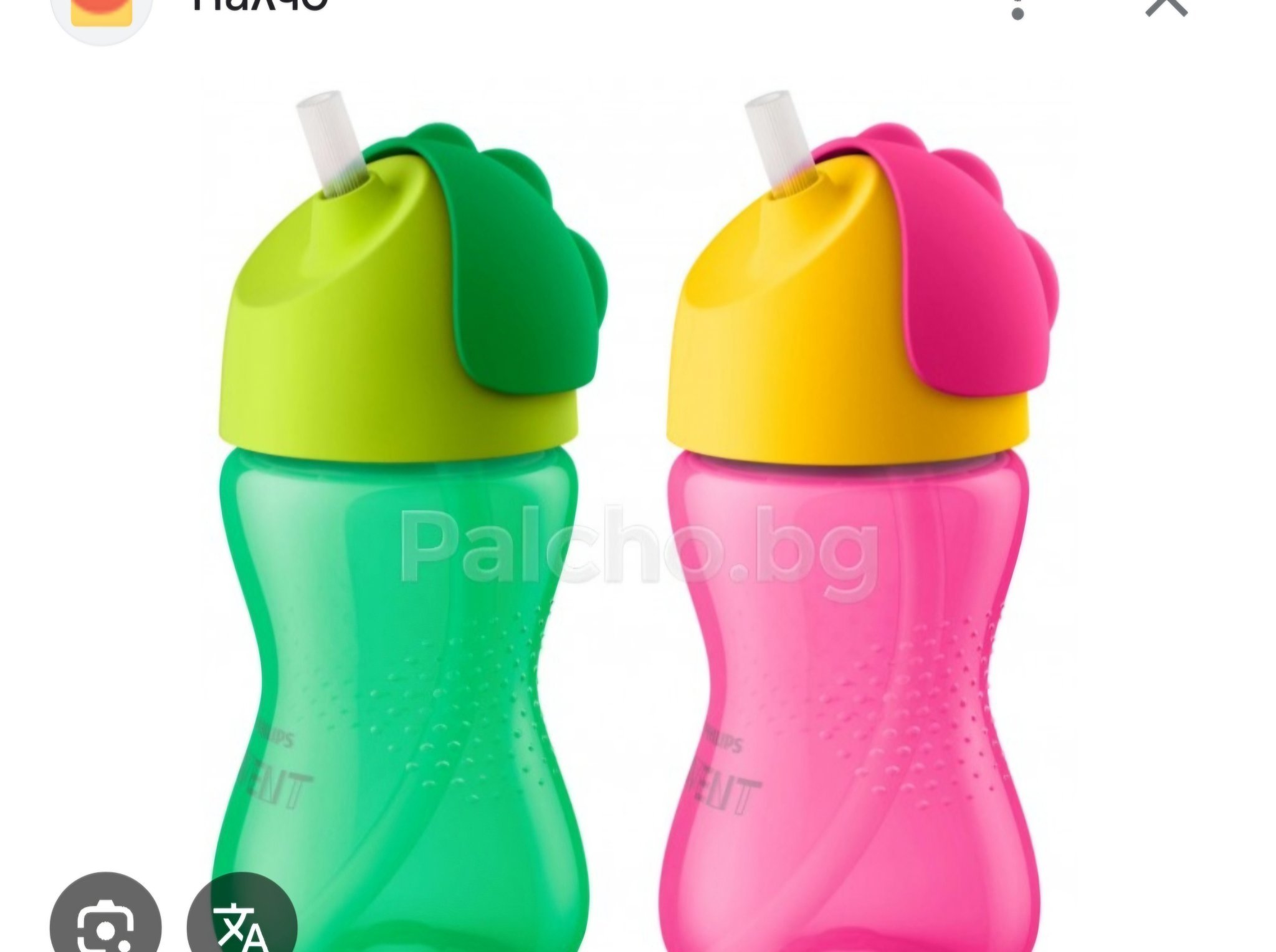 Йони пие от обикновено шише/чаша вода. Тези със сламки и тип "смукалки" не съм ѝ давала.