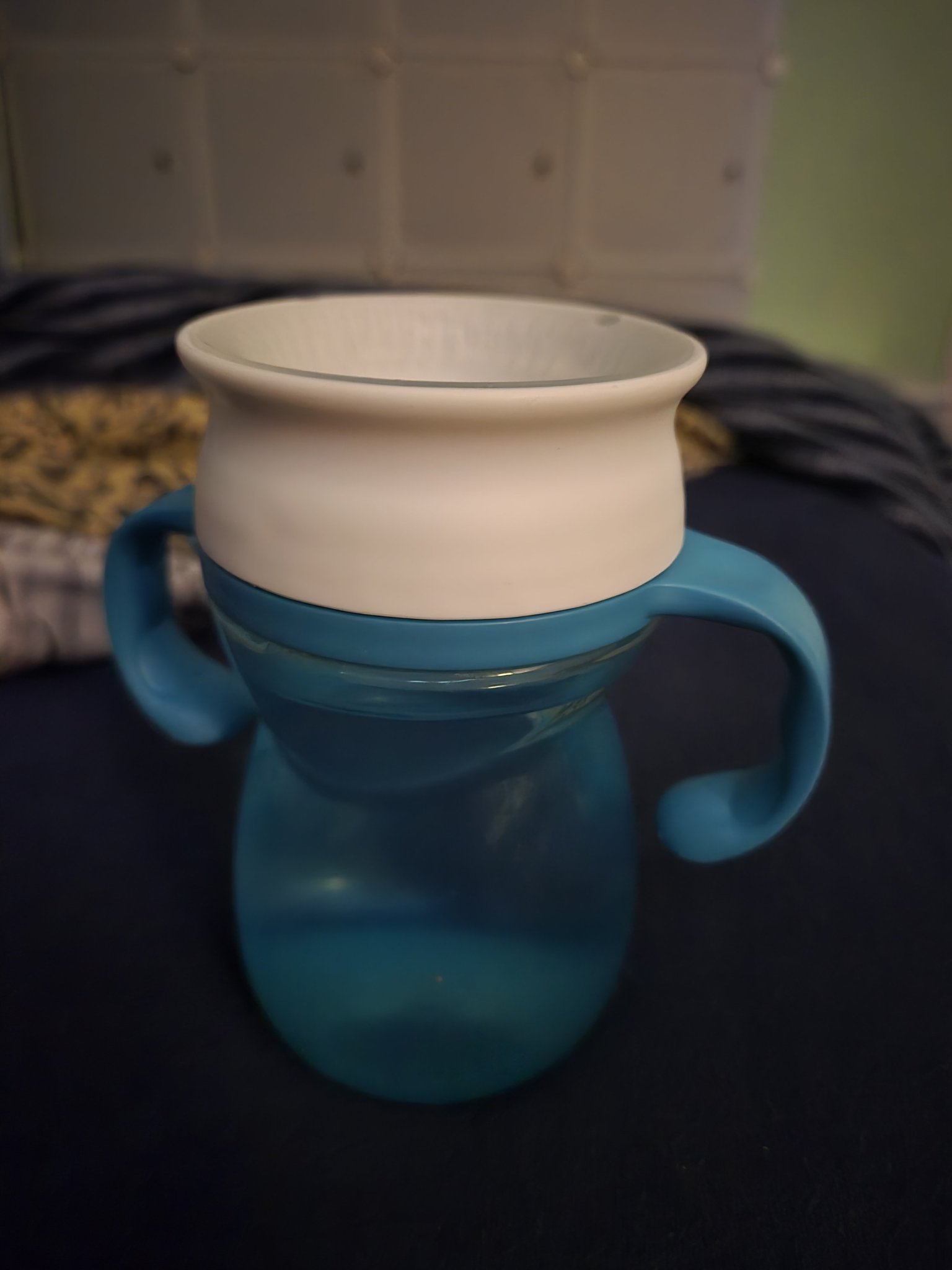 Аз махнах всичко пластмасово, сега ползва стоманено, има само силиконова сламка вътре реално. Само дето като го хвърли в голям шум… иначе държа едно в колата, вкъщи и в детската