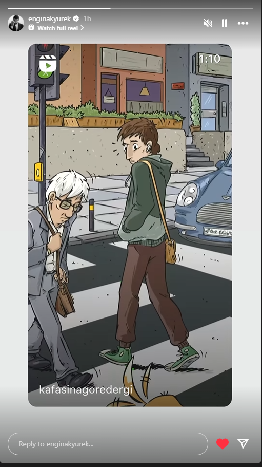 Енгин е качил снощи в сторито си това видео, публикувано на 21 юли в списание Kafasına Göre. В списанието написаха: „Да кажеш здравей на уличните кучета означава, че си изминал една четвърт от пътя да станеш мъж.“