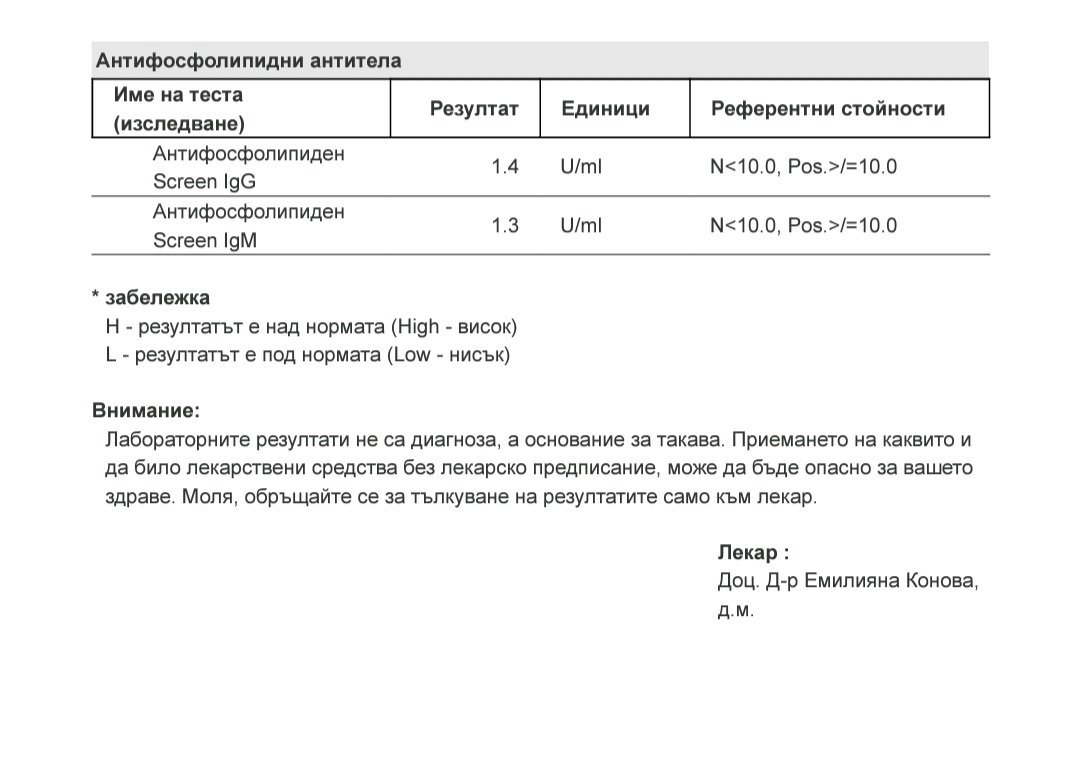 Той ме накара да си направя цветна снимка и да си пусна тест за тромбофилии, както и за микоплазма и уреоплазма в Геника. Заслужава си чакането, ние успяхме с негова помощ. Успех!