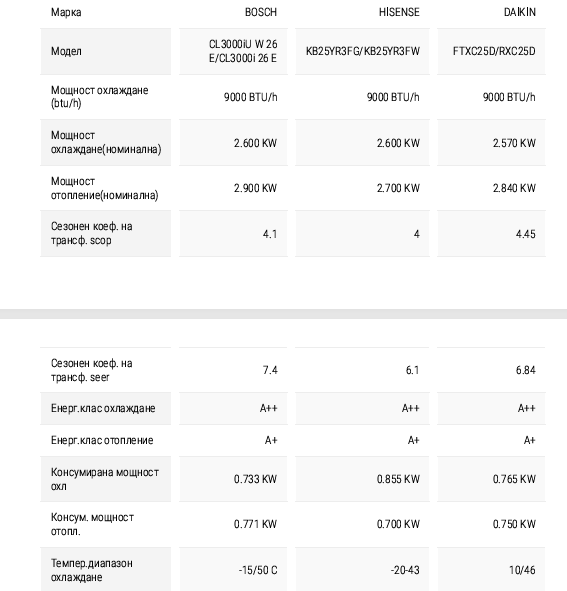 Оглеждам следните климатици и се чудя на кой да се спра.