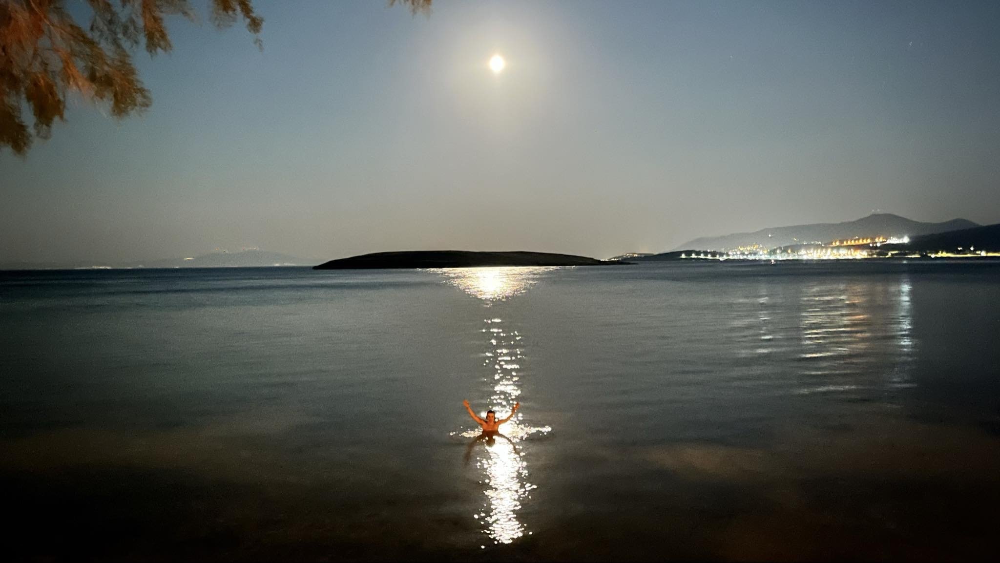 Поздрави от Антипарос с гледка към Парос и снощната луна.
