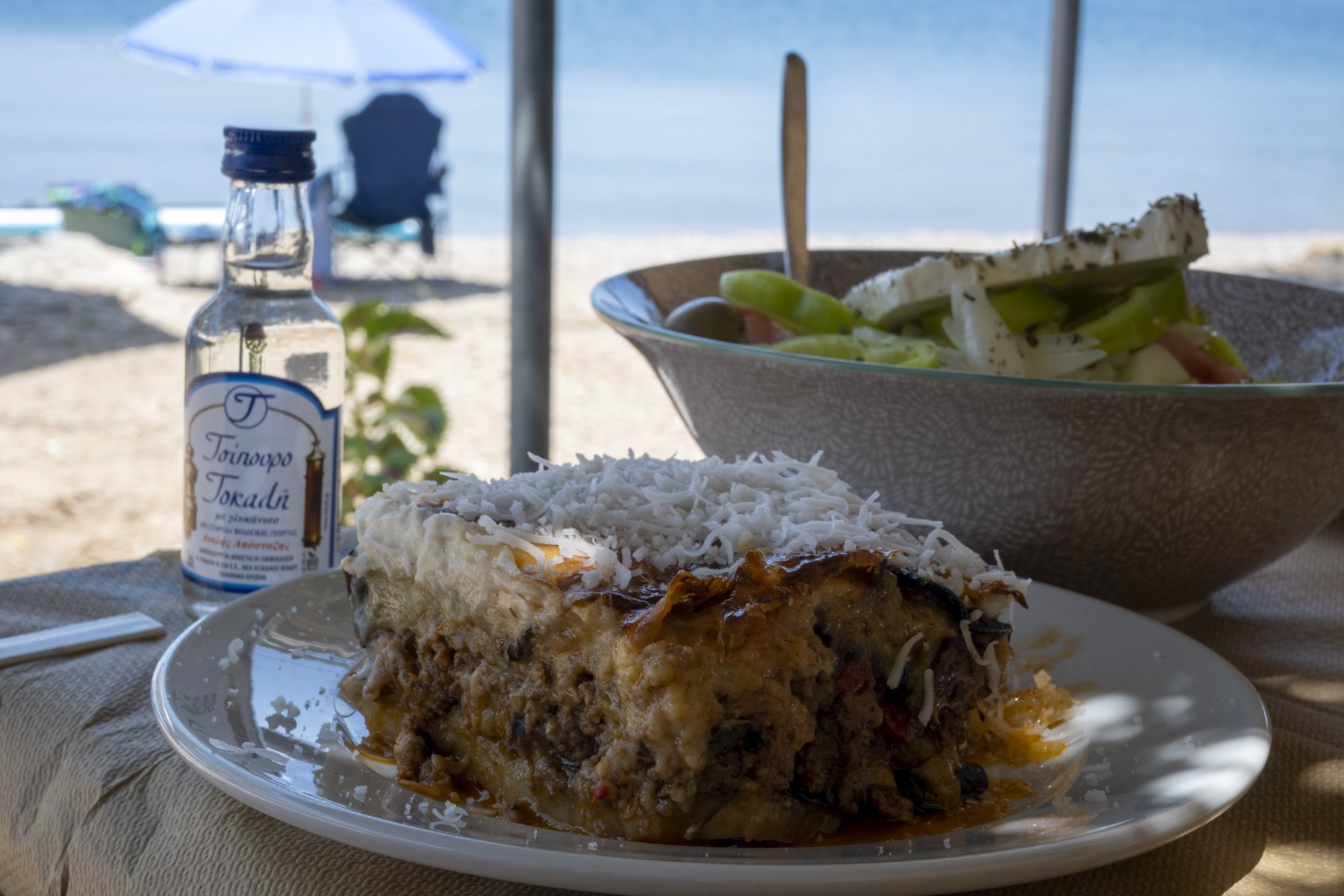 Относно плажовете - Милина има някакъв частичен, който разбрах че се образувал след наводнението. Имаше плажуващи основно гърци. На Олив бийч, е мръсно в свободната зона, виждат се малки боклуци, които никой не си е направил труда да изчисти иначе таверната си е все още там и работи, ние отидохме един късен следобед и така и не пробвахме нищо от нея. На следващия плаж, който е между Олив бийч и Милина, се строи активно и така и не пробвахме да слезнем дотам.
