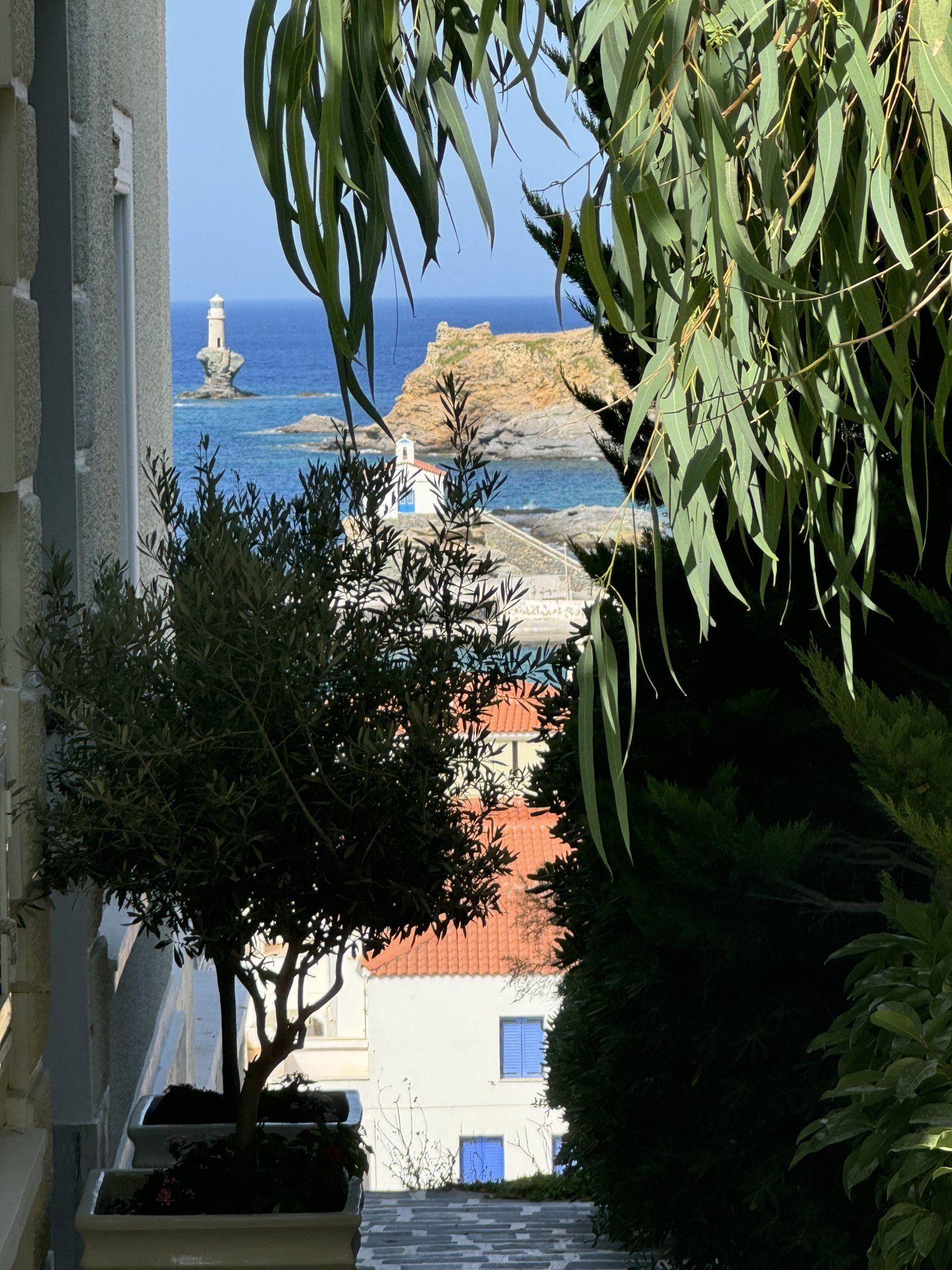 В Хората - там, където бе открито, духаше яко, а плажовете й бяха неизползваеми. Обаче великолепен град, толкова приятна атмосфера и архитектура. Наистина не прилича на другите Циклади - в Андрос са били значително по-богати. Иначе този тип преходна архитектура, в която има и червени едноскатни и двускатни покриви, както и много неокласически елементи, се среща на всички по-близки до сушата острови от архипелага - Кеа, Китнос, Сирос.