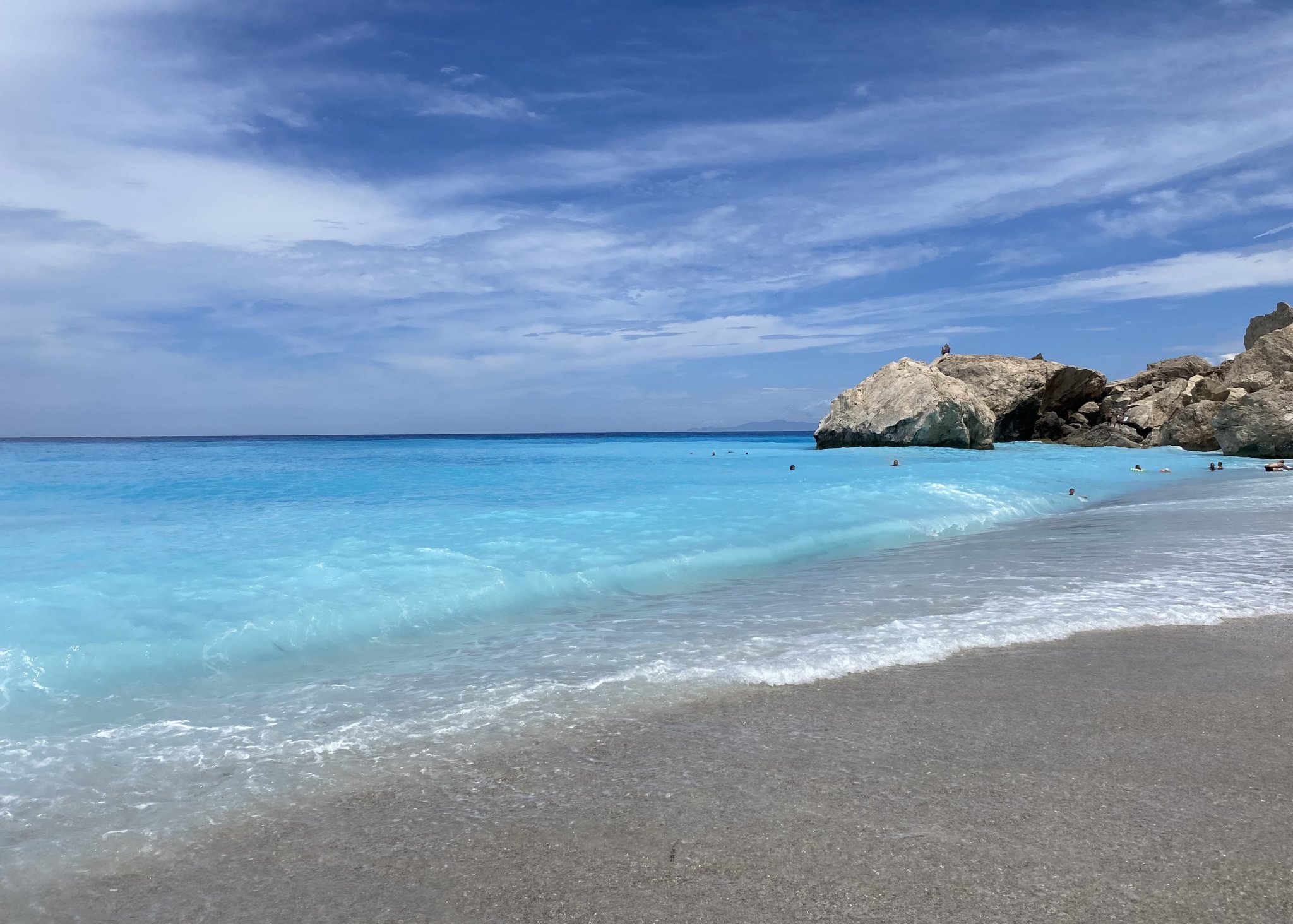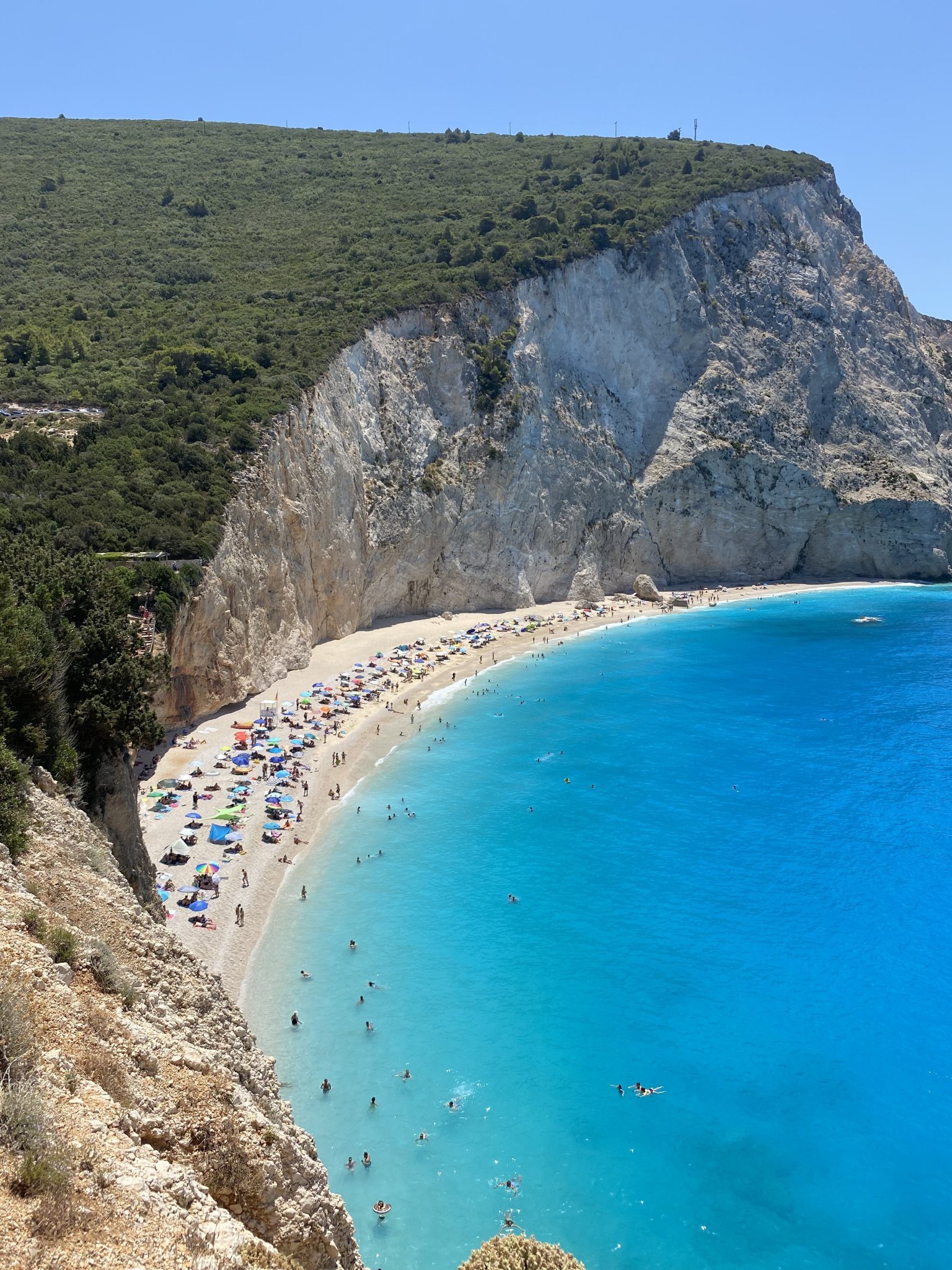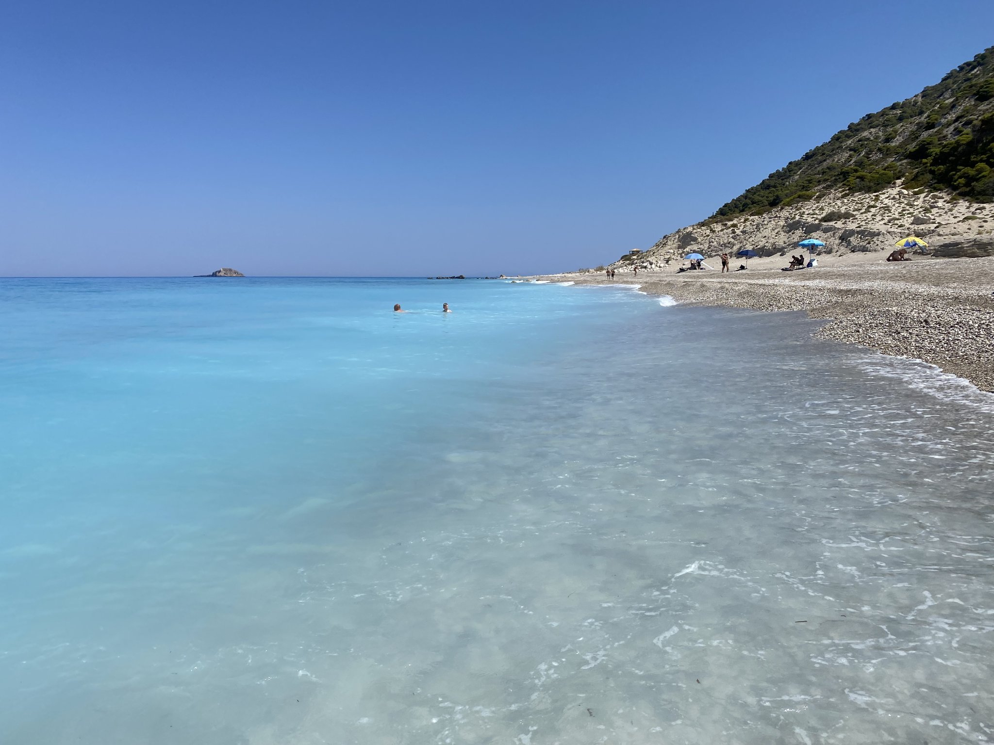 Има магазин и два добри ресторанта в селото. Посетихме Порто Катцики, разбира се. Пак плувах сама сутринта. Който пристига рано, паркира безплатно на обществен паркинг долу вдясно. После вече взимат 10€ на другите паркинги. Към обяд стана пак доста пренаселено… Много ми се ходеше до Егримни, но следобедните жеги ни отказаха. Просто не можех да си представя да изкачвам 400 стъпала и да вървя нагоре почти 2 км при +35…