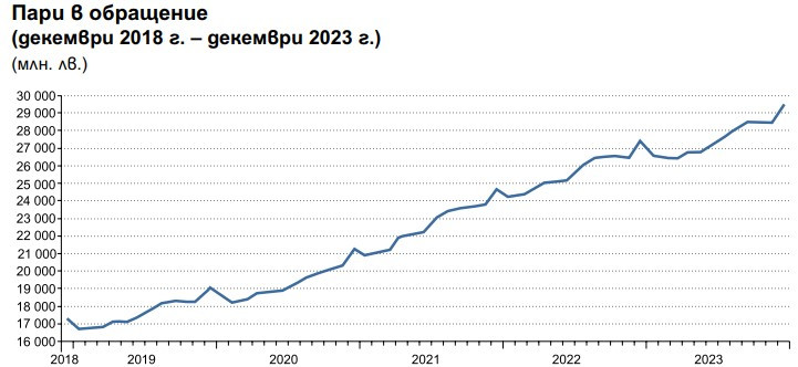 "Нормалните пари", както ги наричаш, ако имаш предвид банкнотите в левове, са към 29 милиарда лева. Ето и как са се увеличили последните няколко години - това ужким при положение, че не можем да печатаме пари ей така от въздуха: