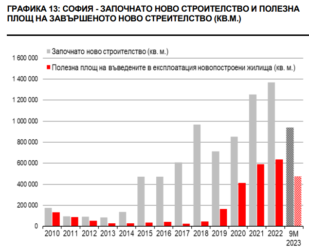 През последните години се вижда колко е било търсенето - до 600 хил.кв.м./година, а са започнати последните 2-3 години проекти за 1.4 милиона кв.м. всяка година.