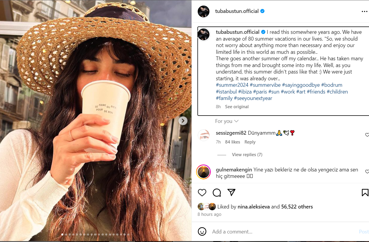 Днес Туба е решила, че е достатъчно мълчанието й (без да броим социалните постове и тези свързани с параолимпийците) и е споделила доста снимки и няколко клипчета от изминалия летен сезон  Поставила е този надпис към споделените неща: