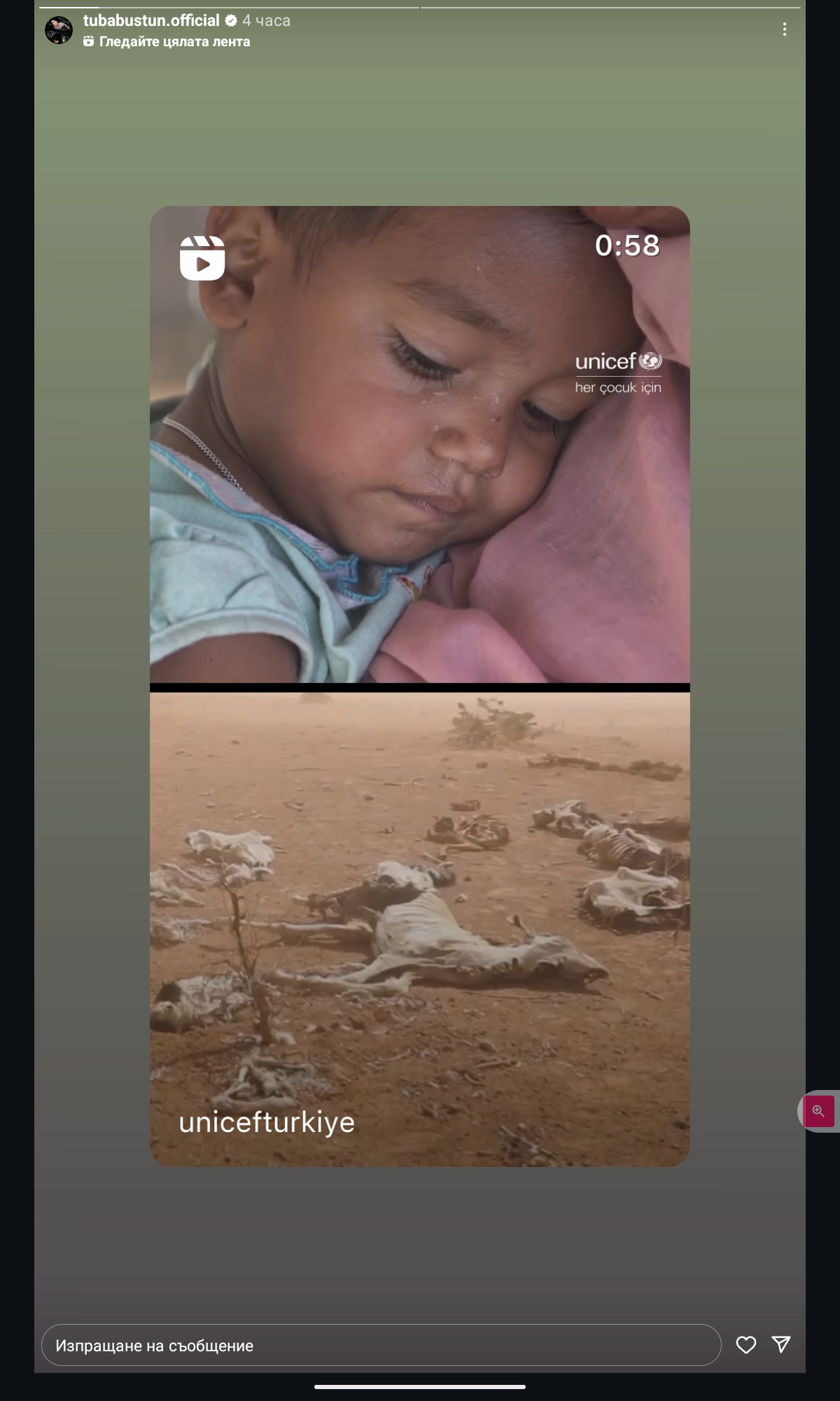 Репоста на Туба  от днес в ИГ й на Уницеф Турция, за който Снинова ни е уведомила Hands V