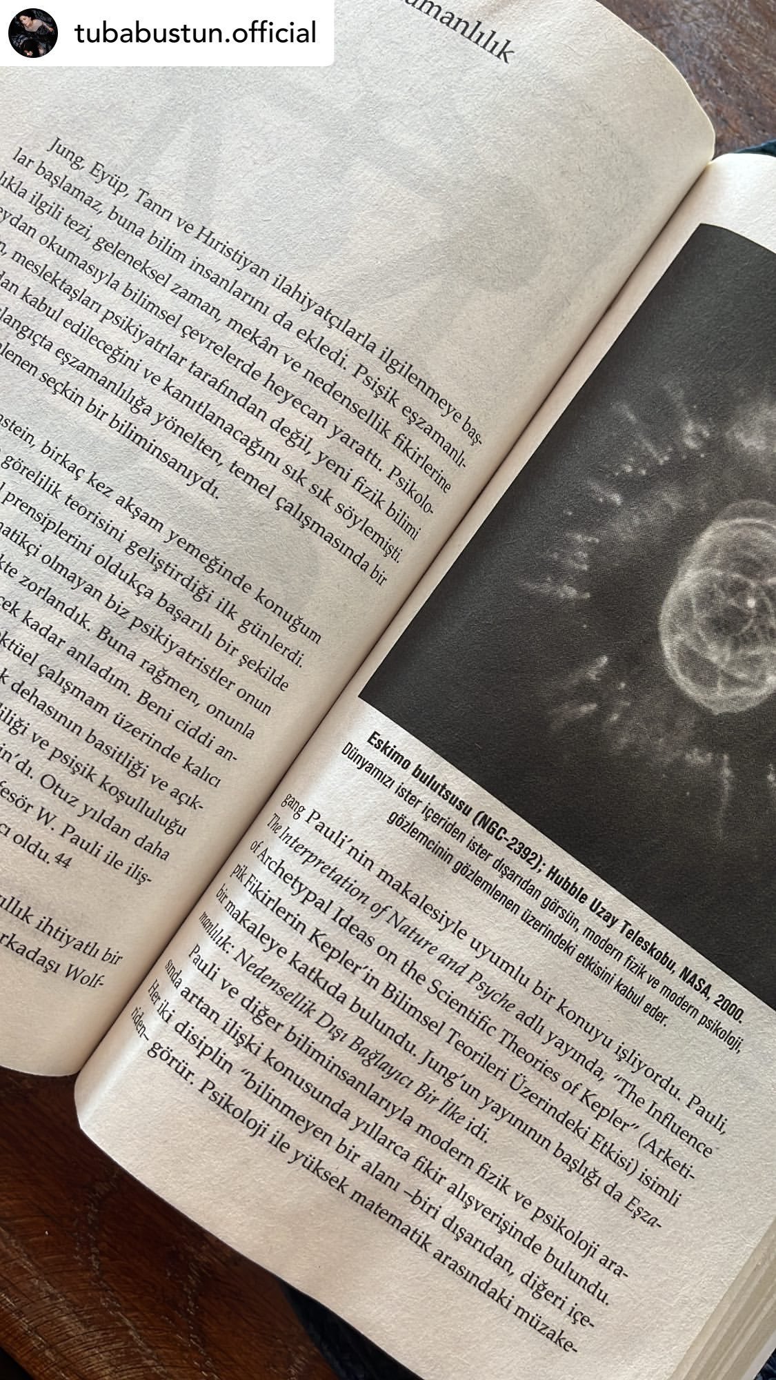 Втората публикация, вероятно от същата книга, засяга как чистата наука и психологията са се пресичали през годините, водещи до по-добро разбиране не само на ума, но и на света около нас. Книгата споменава физика, носител на Нобелова награда, Волфганг Паули, който е сътрудничил с Юнг в продължение на много години. И на снимката тук е телескопът Хъбъл, който отново подчертава как „съвременната физика и съвременната психология работят заедно – и двете признават въздействието на наблюдателя върху наблюдаваното“…