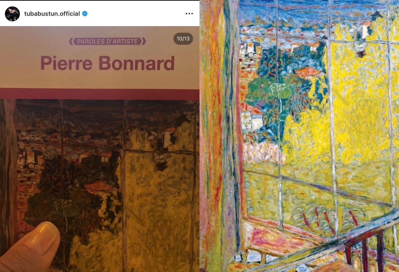 Можем само да гадаем защо Туба включи в последния си пост „Работилница с мимоза” на Пиер Бонар. На пръв поглед може да изглежда, че тя не се вписва в останалите снимки. Но картината представлява огромен прозорец между вътрешния и външния свят. Изобилен от цвят, светлина и слънчева светлина, той ни дава поглед към семейна обстановка, включваща съпругата на Бонар Марта, отдавна смятана за негова муза и вдъхновение. Самите цветя на мимоза представляват слънце, сигурност и обновяване.