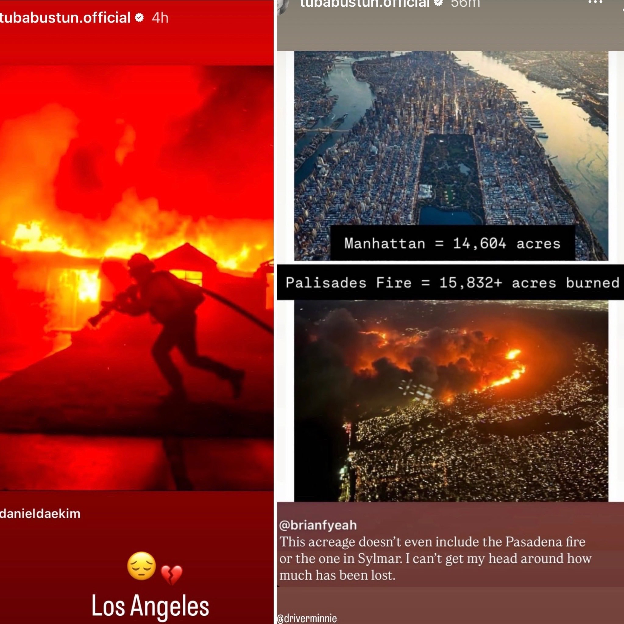 Днес е споделила няколко сторита за пожарите в Лос Анджелис. Едното е репост на Даниел Дае Ким, актьорът с който журираха заедно.