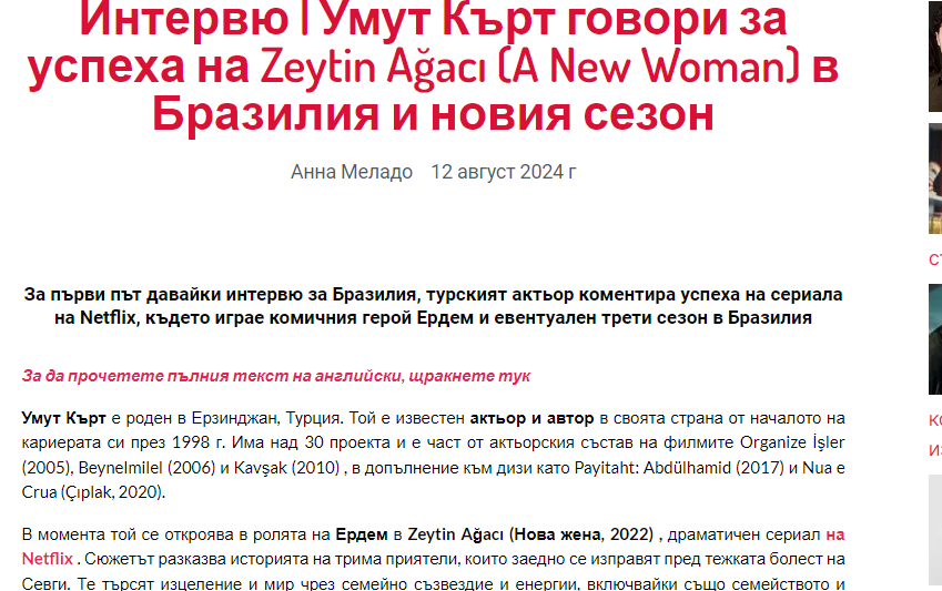 Лина мерси за интервюто. Всички сме в очакване. Въпреки казаното от Умут, не ми харесва тази неизвестност около трети сезон. Дано разберем по-скоро, дали, кога и къде  ще го бъде.
