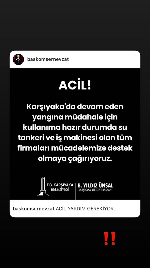 Призоваваме всички фирми, които разполагат с резервоари за вода и готова работна техника за ликвидиране на последствията от продължаващия пожар в Каршияка, да подкрепят нашата борба. T.C. Каршияка
