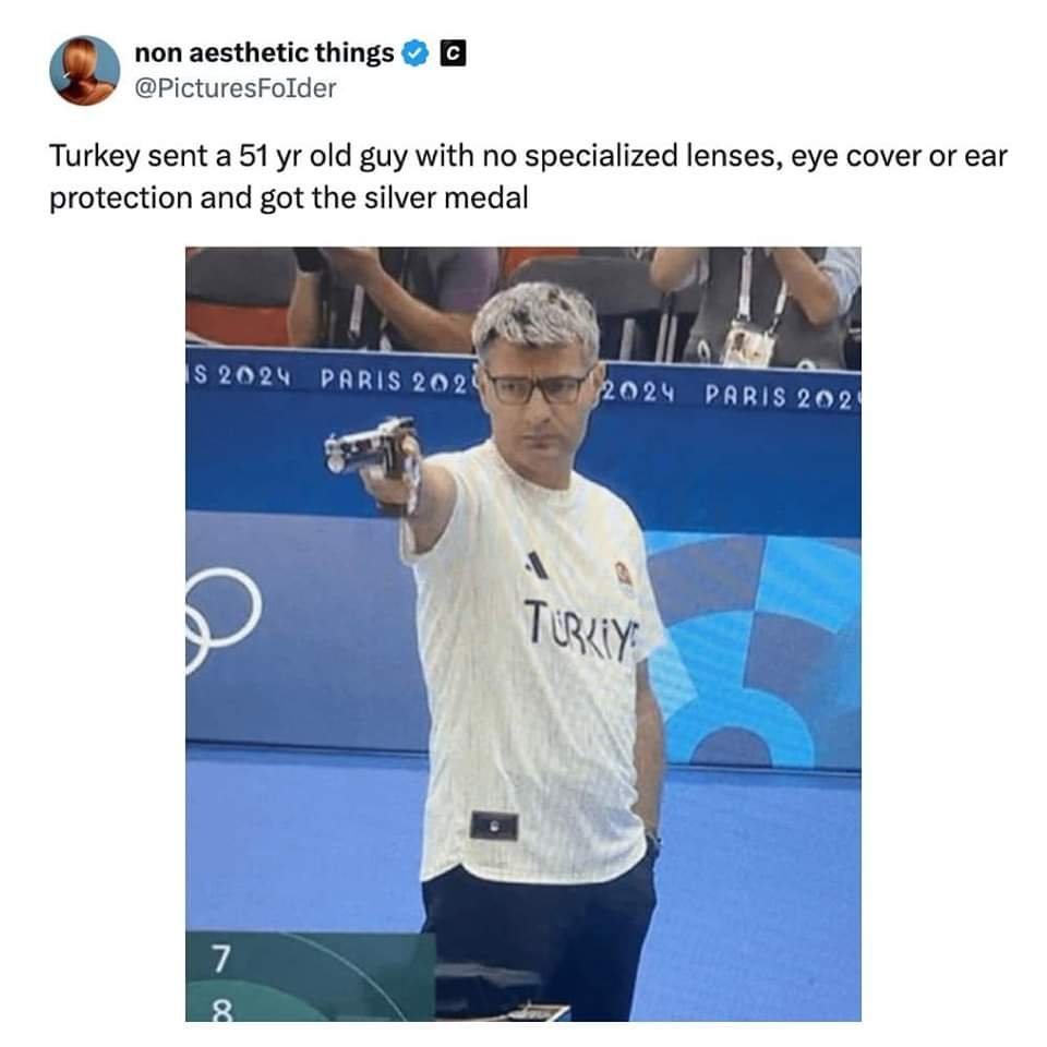 Гледах стрелбата с пистолет. Това как е допуснато за олимпийски спорт? Носят очила с някакви джаджи по тях, а не използват данните си на атлети. Следващия път да изпратят AI poбот, ако не могат да фокусират с око. Хареса ми снимката на турския стрелец - единствен без джаджи по очилата и с ръка в джоба и взе сребро. Like a boss.