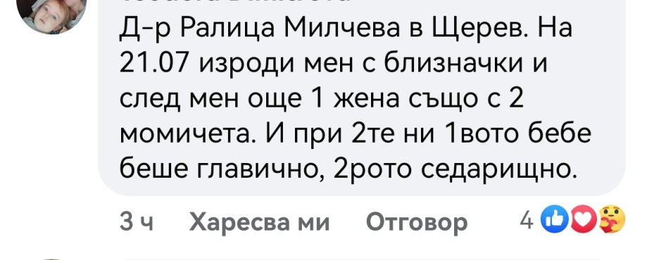 Вецев каза огромна рана съм имала там, където е била изрязвана миомата. Предполагам с растежа на матката, и това място е пораснало. Предната стена е била много тънка, цяло чудо, че не е имало фал, каза при едно естествено раждане, нямало да издържи матката. Много съм благодрна на този човек, а и се радеам на избора си, защоти не искам да мисля как можеше да завърши това при едно подценяване... Съдба, моите мушморочета са невероятни и си е трябвало да си дойдат при нас. Много съм щастлива с двете ни подаръчета момченца. Даже не мога сега да помисля, че съм искала момиченце. Когато вече се появиха, всичко се променя изееднъж, пренарежда се, живота се преподрежда с любимите хора в него. Магия.