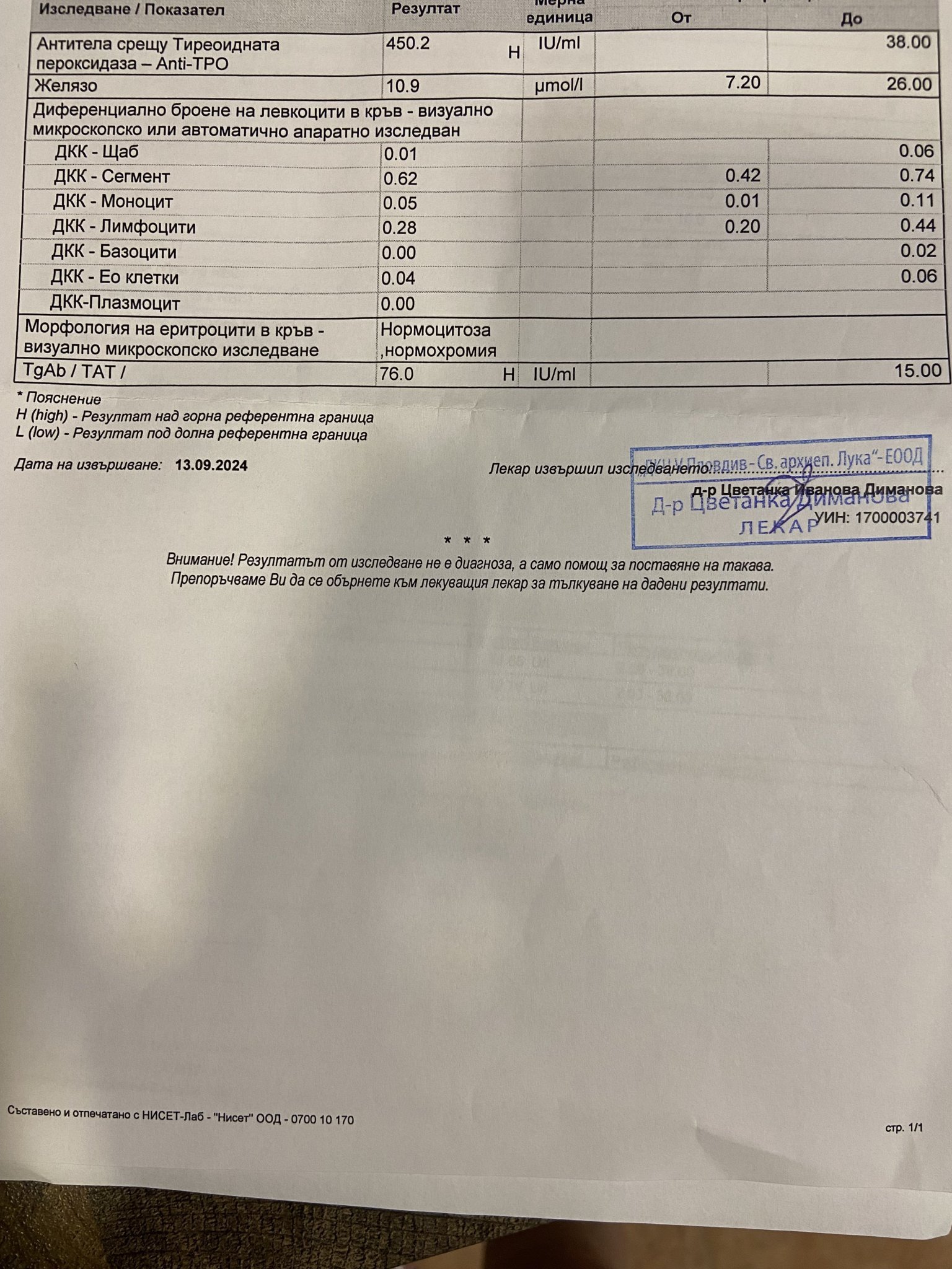 Задължително на ендокринорог. Антителата са много високи, което в повечето случаи е признак на Хашимото.