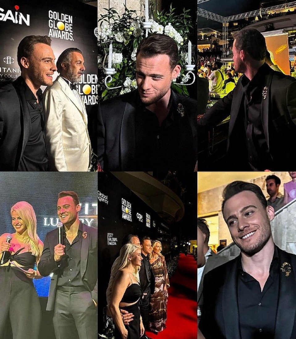 "На вечерта на „Наградата за глобална икона Златен глобус“, организирана от Керем Бюрсин, председателят на Златен глобус Хелън Хьоне се появи пред пресата с члена на борда Барбарос Тапан и актрисата Бюшра Пекин."