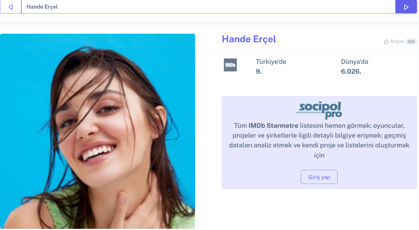 Според данните на Socipol IMDB Starmeter тази седмица Керем е на 4-то място, а Ханде на 9-то Simple Smile