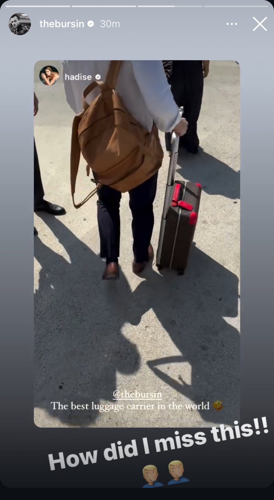 "Керем и Хадисе имаха предаване на живо, в което зададоха куп въпроси, и двамата отговориха, че са само приятели, че той и Хадисе не били двойка, Керем е поискал Хадисе да го последва го в Instagram, тя каза, че е последвала само един човек, който следва само котката (нейната бъдеща марка), никой друг... и имат някаква задача... Керем трябва да направи нещо на червения килим -  утре ( днес), така че тя да го последва... той се страхува от това, което наистина искат от него... накрая Керем говори за изненадата, Хадисе, Лексус и за себе си."