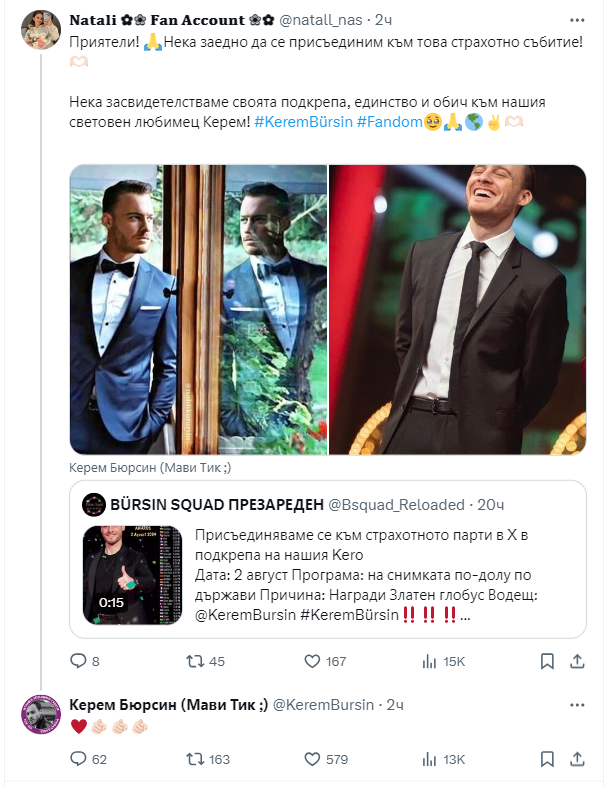 Добър вечер момичета,  и аз да се включа в красивите снимки на Ханде и Бъръш!! Страхотни като партньори,  дано филма да има голям успех, вярвам че ще има и двамата са много добри актьори!! Чакаме  да излезе!!