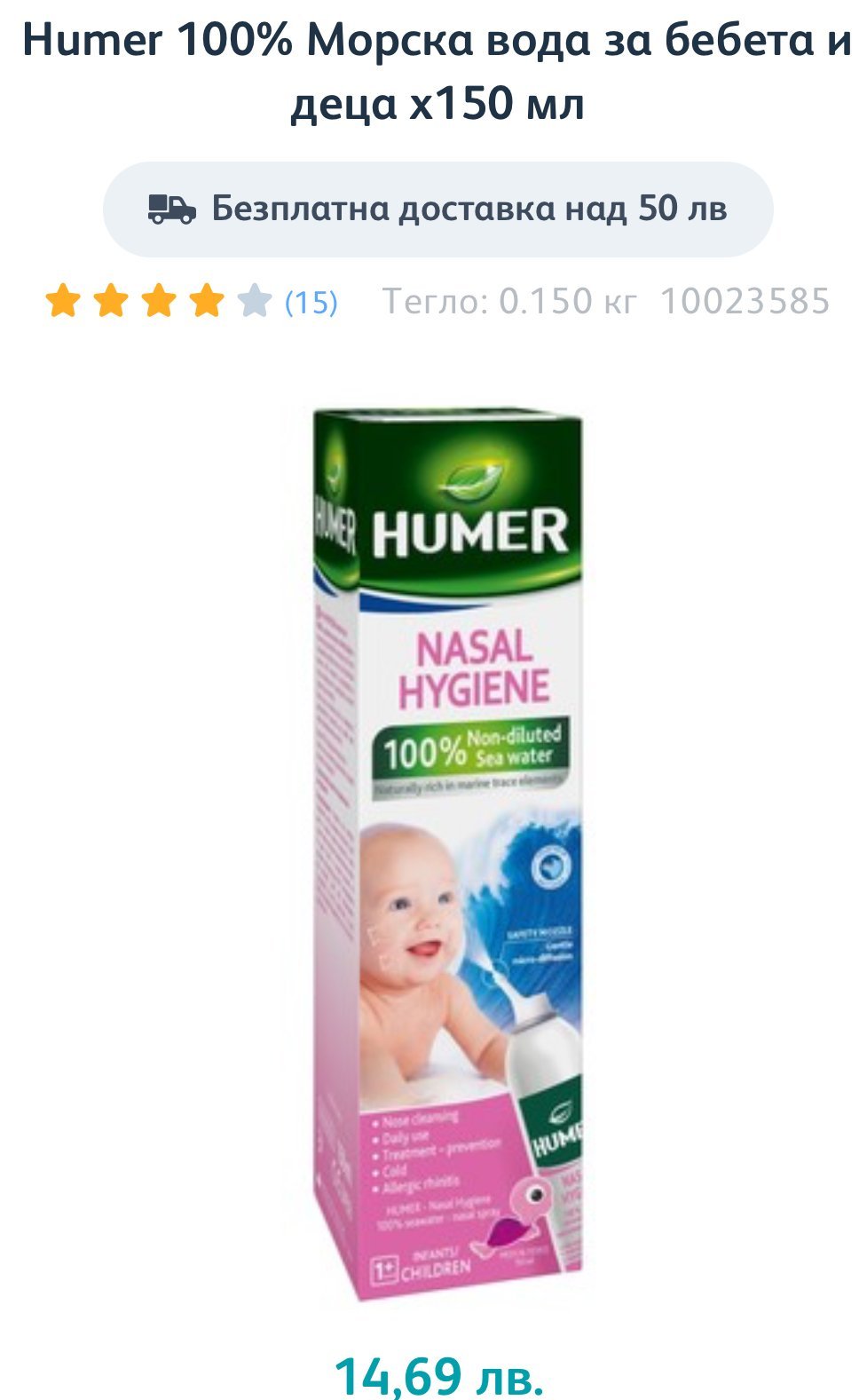 Малко ме беше шубе да й пръскам в носа, защото първия път сякаш малко се задави, а и реве от него. Обаче тази сутрин така хубаво й излезна едно сополче от едната ноздра. Може да се пръска 2-3 пъти дневно. Аз като я чуя да диша по-трудно и й пръскам.