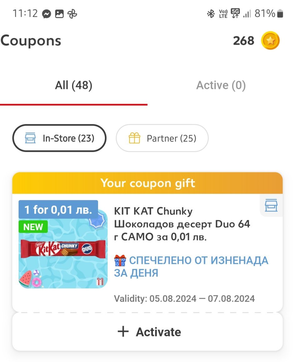 Здравейте, подарявам купона за кит кат ако някой го иска