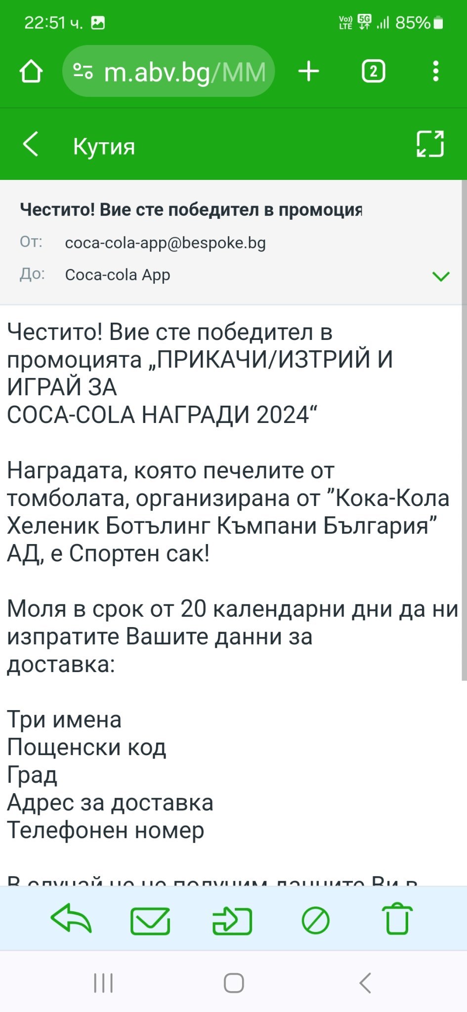 С Кола не можем да се спогодим...все ме пропускат, вече губя мотивация. Поне Шуменско ме зарадваха днес с ваучер, явно бира ще се пие!