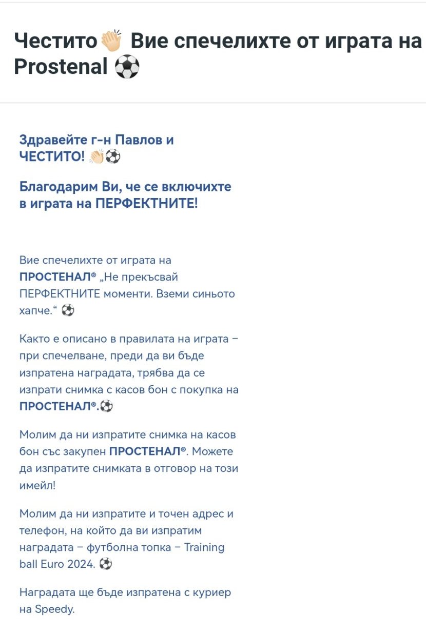 Някой ако има бележка на Prostenal да пише. Не съм разбрала, че ще искат снимка на бележка, мислех, че е само с регистрация. Ще подаря топката като ще напиша данните на човек от форума.