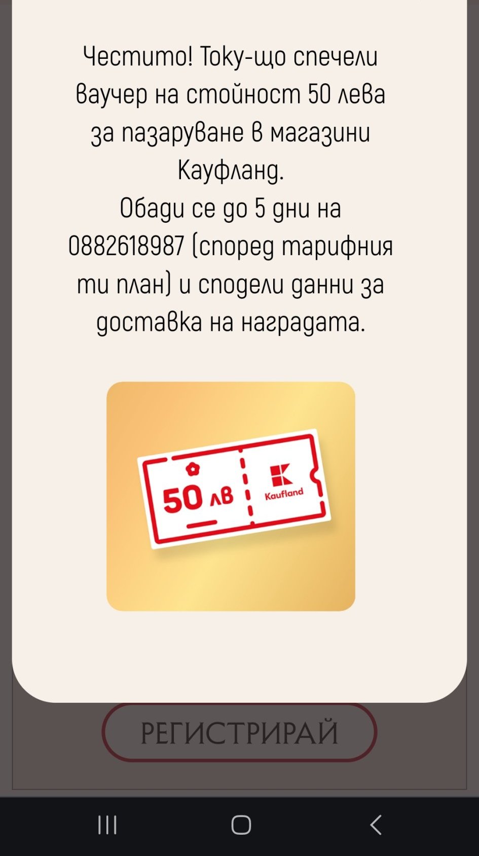 Току що спечелих ваучер и комплект бири