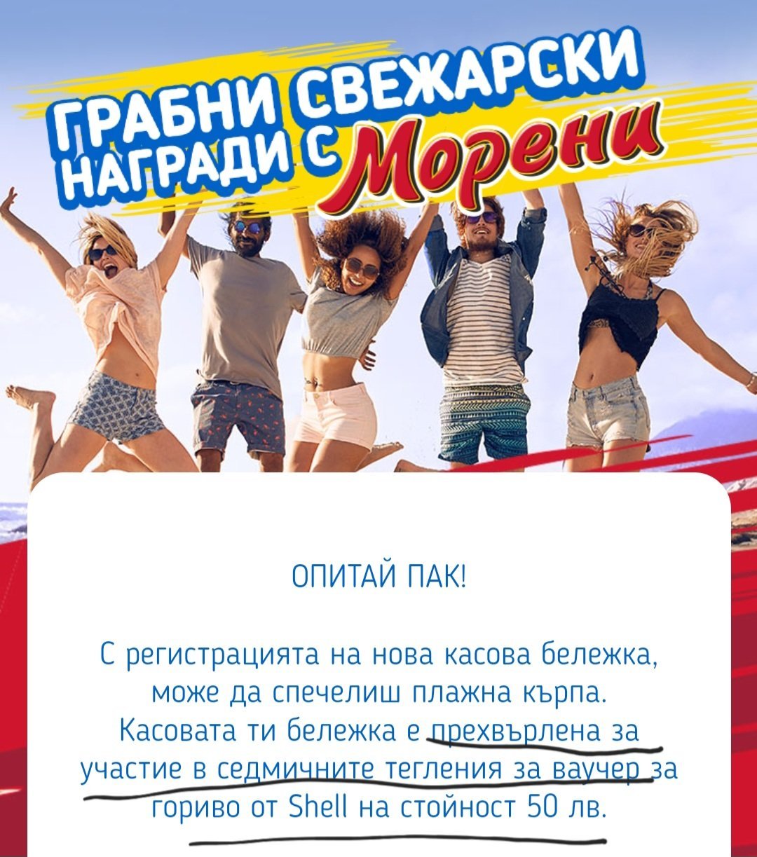 Опитай пак от Морени. Участието се прехвърля за ваучер ( дано поне за ваучер имам късмет ) 🤞