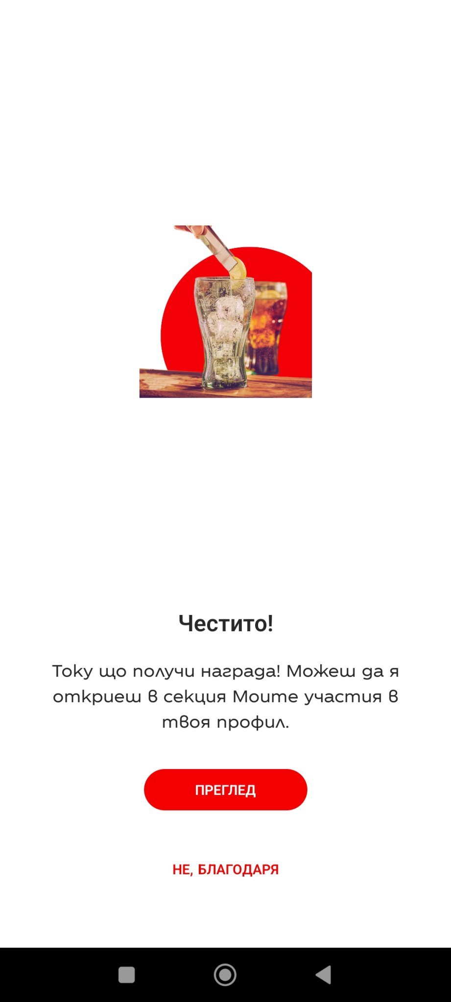 Благодаря на Koshnica и Dreamvarna за кодовете от стъклени бутилки от Кока кола преди малко спечелих чашите.