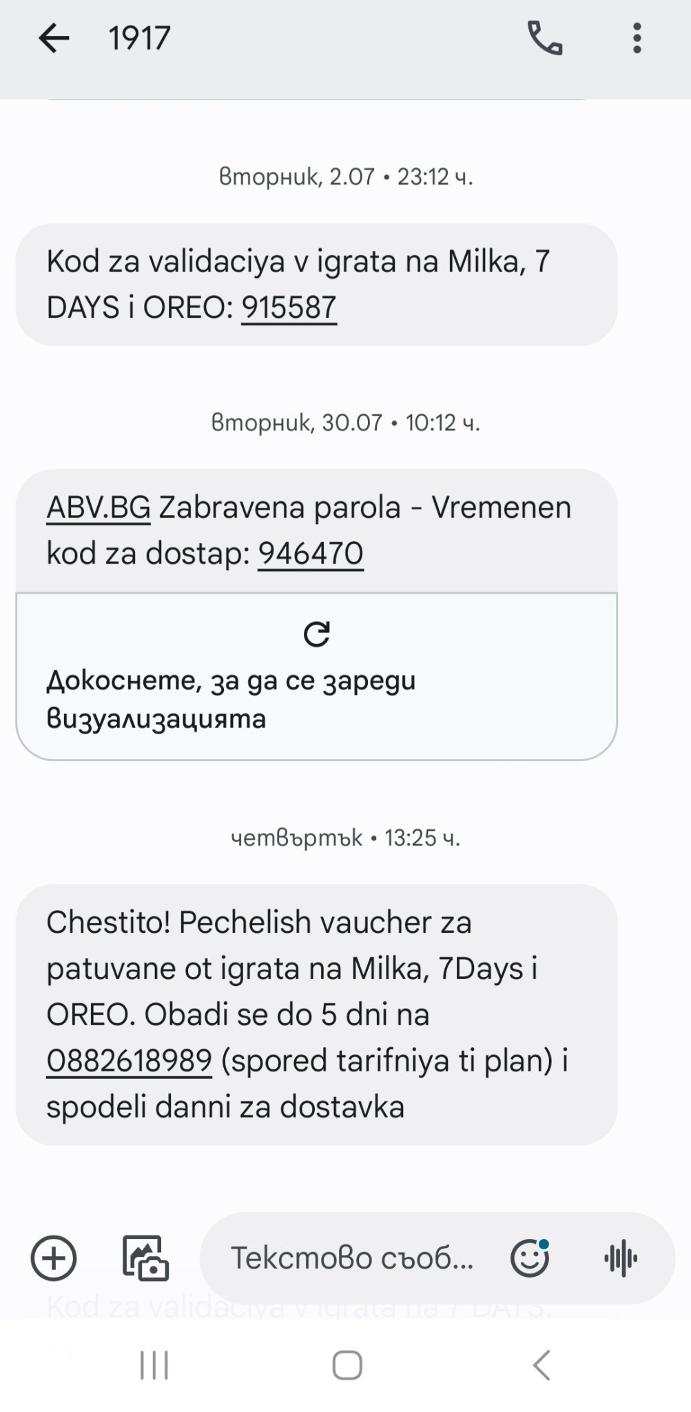 Видях номер, като моя впечелившите от 7days u Milka, но нямах съобщение... поразрових се и беше съобщението беше в спам