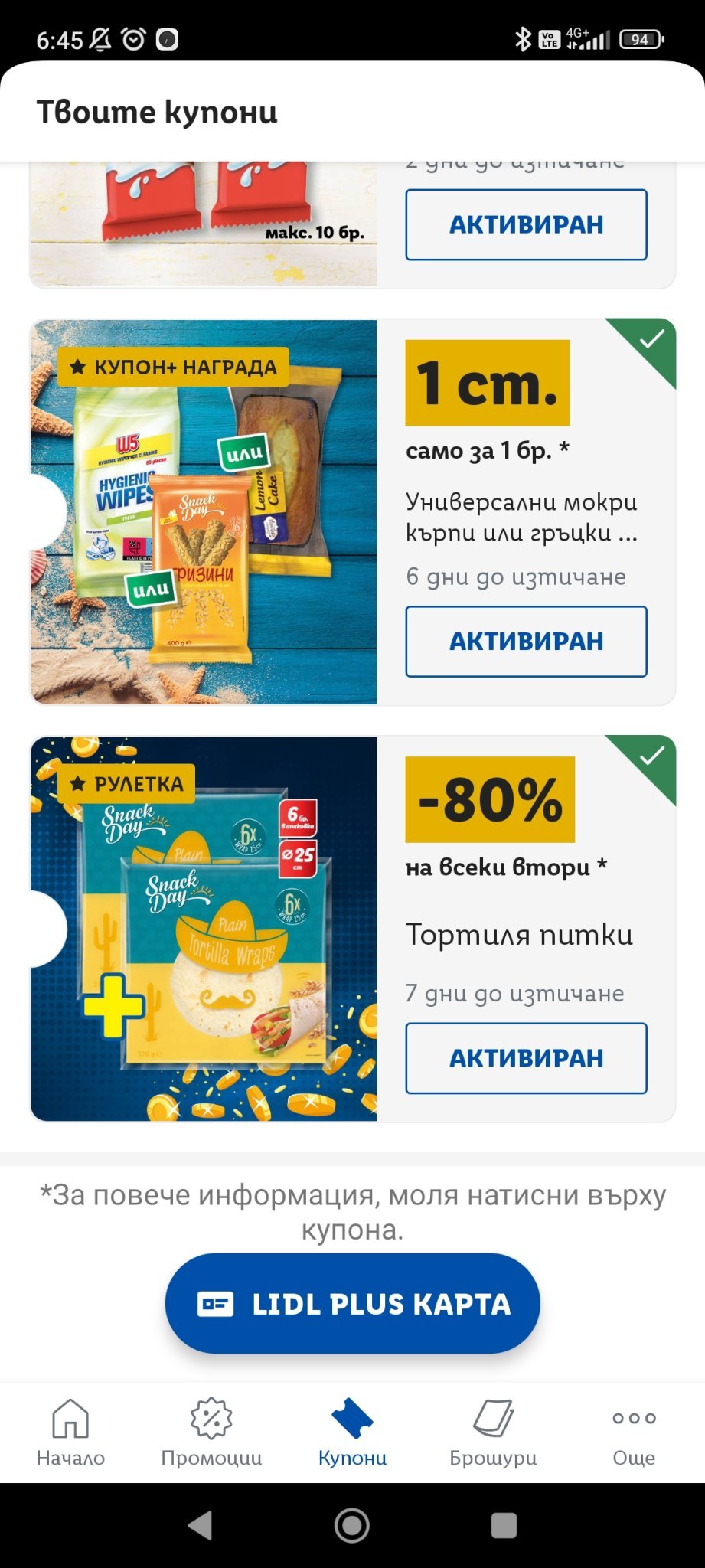 Подарявам купоните, останалите също са активирани, ако някой нещо му върши работа